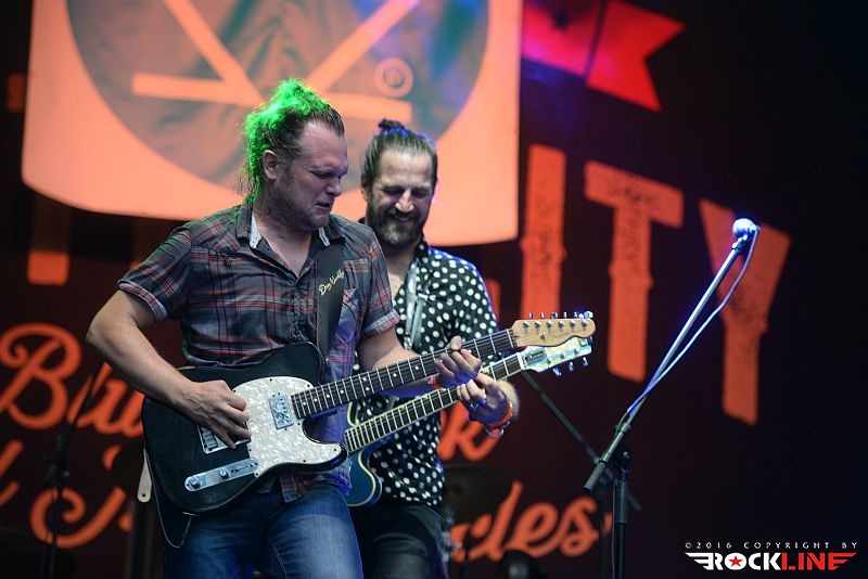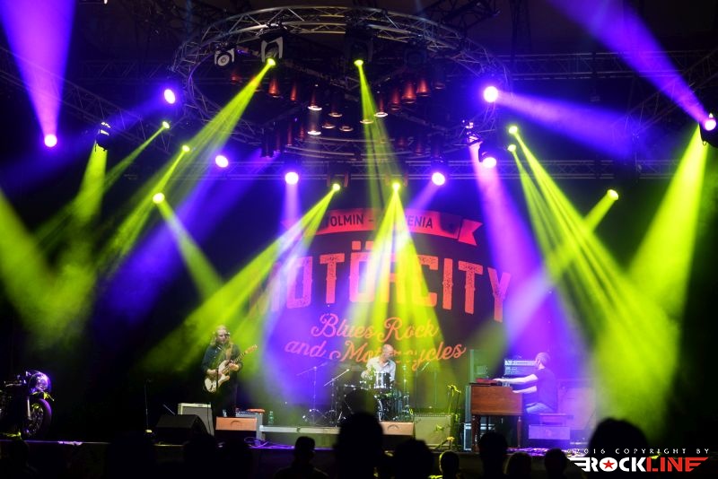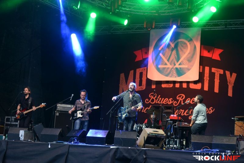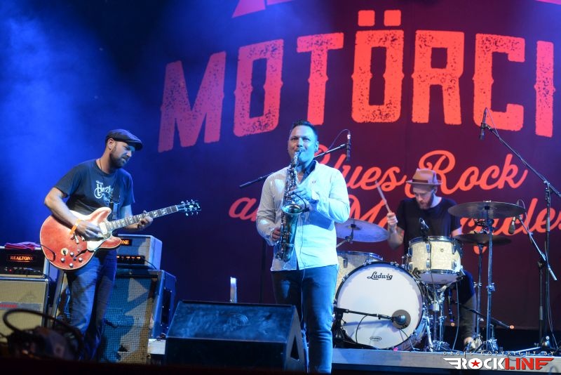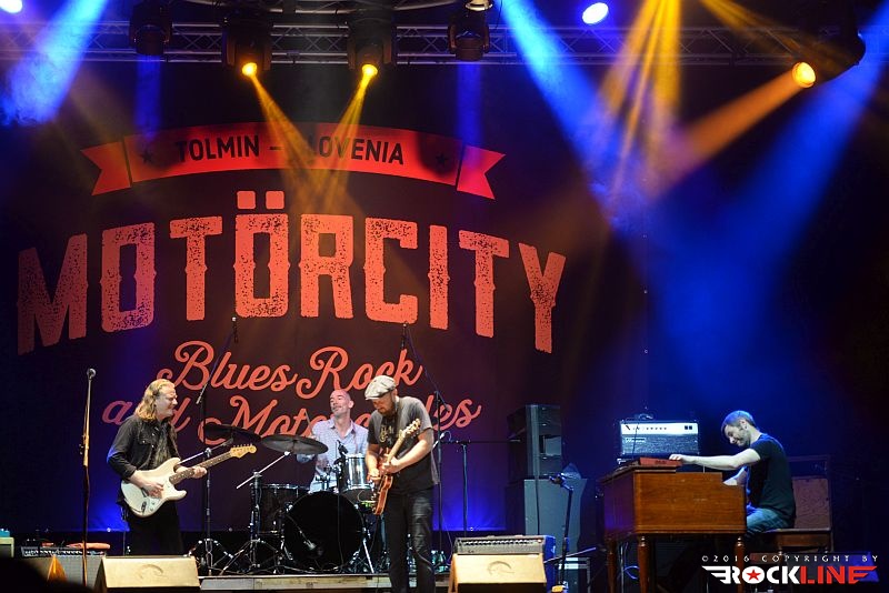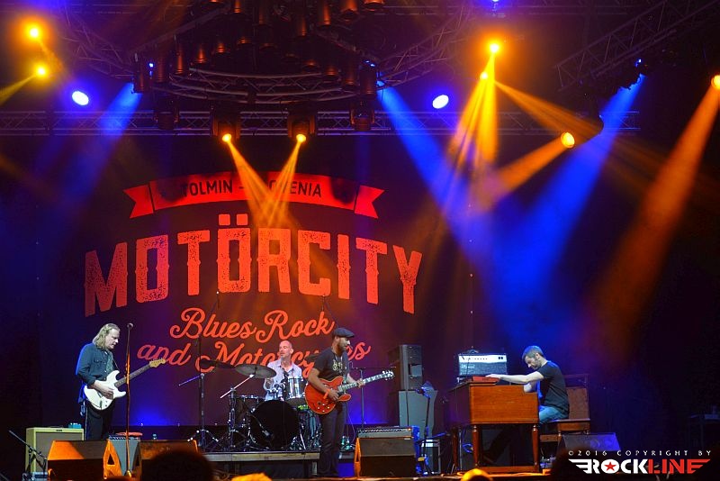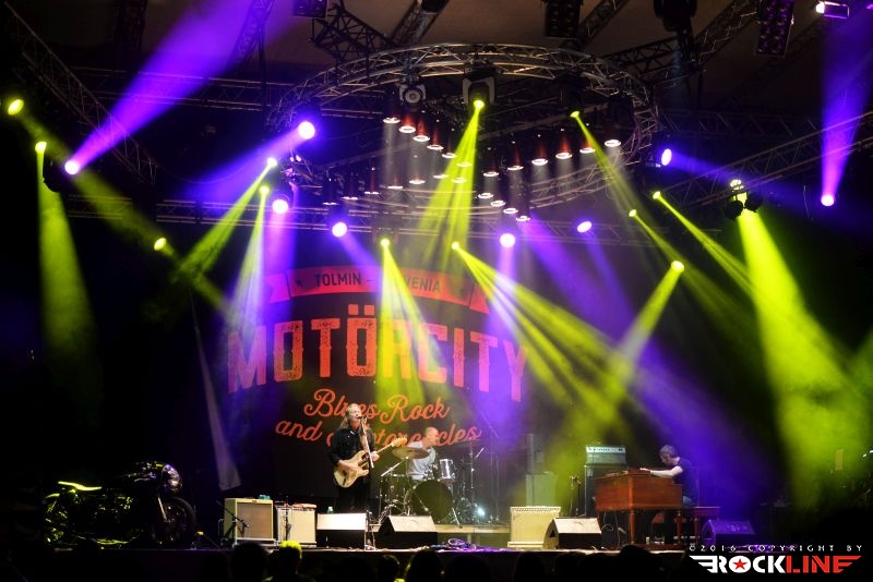 Tako. Prišel je tudi tretji (in zadnji) dan prve izdaje festivala Motörcity! Tolmin in sotočje sta z letošnjim letom postala torej bogatejša še za en festival. Z njima vred posledično vsa mednarodna glasbena srenja. Žal pa tudi sobotni dan ni privabil več obiskovalcev, kot bi si festival, ob svojih prvih korakih, zaslužil. Tudi na zadnji dan se je program začel petnajst minut do sedme, prvi pa so na oder vskočili Hamo & Tribute 2 Love. Skupino vodi seveda karizmatični Matevž »Hamo« Šalehar, vselej nalezljivega in kipečega optimizma ter vedrine. Hamo And Tribute 2 Love nastopajo zadnje čase zares veliko. Matevž je ob tem še večkrat gost drugim izvajalcem. Zelo dobro medijsko podporo ima skupina tudi na nacionalni radijski postaji, obenem pa je trenutno zelo iskana koncertna roba. Z drugo besedo. Hamo And Tribute to Love so vroči! Čeprav je v bend že pred časom vstopil novi član, ki ni nihče drug, kot eden najbolj dovršenih in stilsko vsestransko definiranih slovenskih kitaristov ta hip Peter Dekleva, se mi je šele na tem festivalu ponudila prva priložnost, da vidim kako funkcionira Hamova tovarišija s Petrom na glavni kitari. Dobiti Petra v ekipo ni mala stvar. Tudi tega dne je večina opazovala koncert razkropljeno po platoju. Tonski mojstri so pripravili izvrsten zvok ter vse ostalo za izvedbo optimalnega koncerta in bend ni skrival izredno dobrega razpoloženja. Med publiko je bilo moč uzreti celo dekle z originalno majico s Hamo And Tribute 2 Love logotipom. Bend je obredel najmarkantnejše trenutke povzete z vseh treh albumov, ki so izšli do tega dne (kmalu bo izšel tudi četrti). Tako je med publiko natresel sveženj dodobra ponarodelih skladb, saj so stalnice radijskih valov. Kremenito organski in žmohtno rockovski zven kitar, podprtih z reverb efektom, izvrstni solo izleti Petra Dekleve, ki je znova imponiral s svojo filigransko perfekcionistično doktrino obvladovanja šeststrunske teorije. Ekipa izvrstno uigrana, Hamo polno prepričljiv v vokalni interpretaciji. In taisti, silno samozavestni Hamo, je proti koncu nastopa uspel privabiti publiko bliže k odru. Tako je postal nasploh prvi izvajalec festivala, ki mu je to, za razliko od predhodnikov, dejansko tudi uspelo. Hamo And Tribute 2 Love so torej dostavili pričakovano dober špil, v zaključnem delu, pa je tudi Martin Janežič Buco zagrmel s svojim prodornim in možatim vokalom, ko je stopil izza bobnov in se premaknil povsem na pročelje odra.