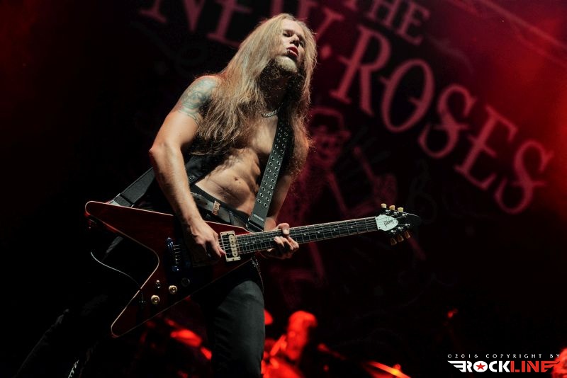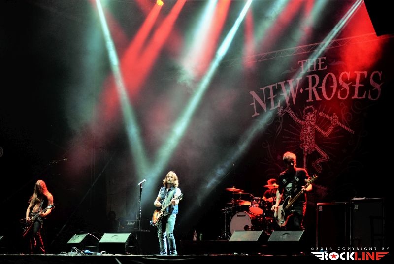 Potem pa so na oder priseli The New Roses, sicer nemški hardrockerji, nastanjeni v Wiesbadnu. Kvartet, ki ga zastopajo Tommy Rough (vokal, kitara), Dizzy Presley (kitara), Stefan Kassner (bas kitara) in Urban Berz (bobni), je preskočil na višji nivo svojih glasbenih dejavnosti z letom 2012, ko se je ustalil v omenjeni postavi ter od takrat nanizal tri studijske albume, zadnjega med njimi »One More For The Road«, prav v lanskem letu. The New Roses »letijo visoko«. V relativno kratkem stažu delovanja so igrali na velikih festivalih, odpirali koncerte pred zvenečimi imeni rocka and rolla pa tudi metala, kot so mdr. Joe Bonamassa, ZZ Top, Roger Chapman, Molly Hachet, Accept in Saxon, vrata pa jim odpira preprosto, njihova odrska odličnost. Izjemna dinamika, izjemna naštudiranost. Izjemna profesionalnost. Od glave do pete. Kompaktno izdelan energetski hard rock šus. Sicer ne prinašajo glasbene revolucije, a vsega kar se lotevajo, čeprav spominjajo riffi nemalokrat na starejše hard rock zasedbe, kot so Gotthard ali stari Bon Jovi, opravijo z neverjetno žgočim žarom in prepričljivostjo. Vokal blago rezek, a eksploziven, z nič antipatičnega »nemškega« naglaševanja angleščine, kar se sicer rado navzame nemških vokalistov. Nenehno tekanje po odru in koketiranje s publiko, menjanje pozicij. Dodelane vokalne harmonije, izvrstne solistične pasaže, kompaktno vžigajoči riffi in nalezljiva refrenska spevnost. Bend je preprosto očaral. Kdor je nemara zgrešil njihovo predstavo v Tolminu, ima možnost popravnega izpita na letošnji izdajo Harley Davidson festivala, ki se bo zgodil streljal stran od Beljaka, kjer nastopijo The New Roses, v družbi kultnih The Darkness in sicer v prvem vikendu letošnjega septembra. Bend je odigral sledeč repertoar: Every Wildheart, Forever Never Comes, Dancing on a Razorblade, It's a Long Way, Life Ain't Easy (For a Boy With Long Hair), Devil's Toys, One More for the Road, Thirsty.