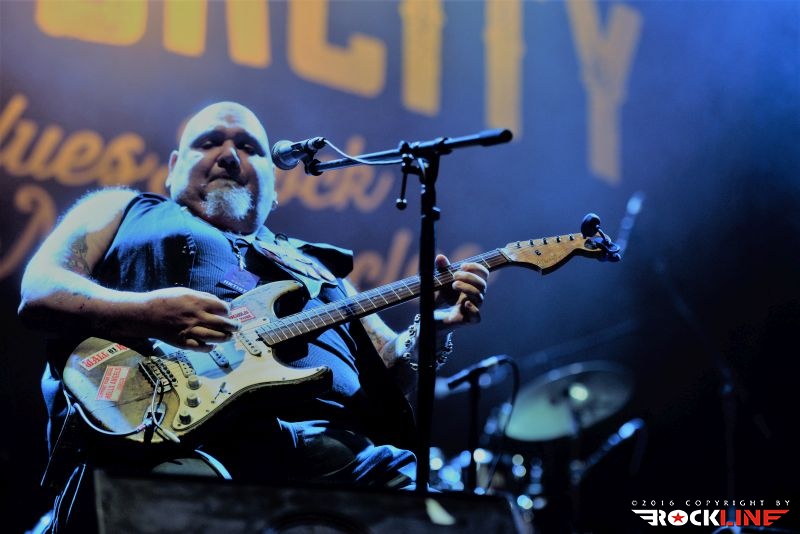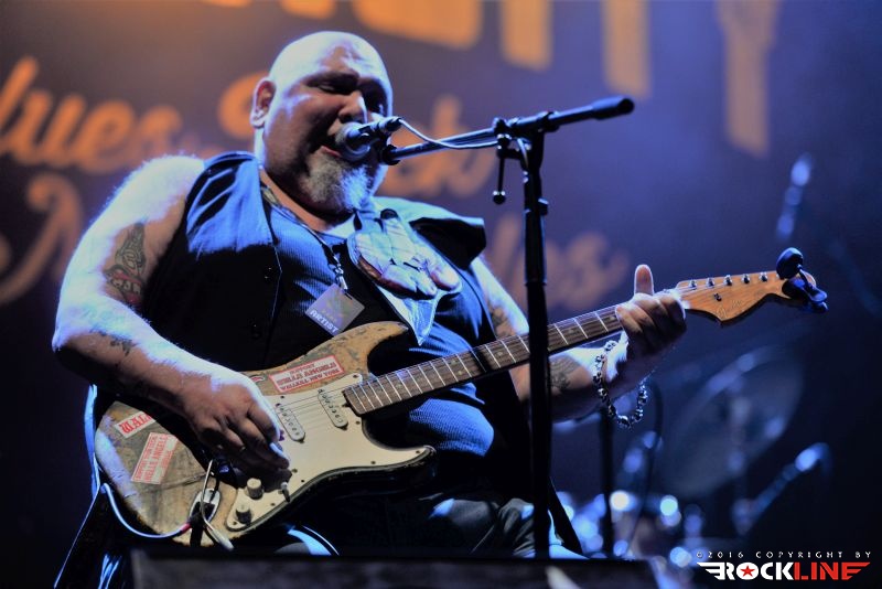 Vloga glavnega nosilca prvega dne festivala pa je pripadla Tedu Horowitzu, možakarju, ki je svetovni glasbeni srenji znan pod vzdevkom Popa Chubby. Blues in rock kitarist doma iz ameriškega Bronxa je tega dne dostavil največ tistega, kar zadržuje v glasbi oznaka blues. Koncert je odprl zelo taktično. V hipu je bila publika njegova, ko se je že uvodoma lotil The Leaves klasike Hey Joe, ki jo je nekoč davno tega močno populariziral pokojni Jimi Hendrix. Popa Chubby je zaigral na odru po vzoru udarnega power blues rock tria. Spremljala ga je ritem naveza Anthony Candullo (bas kitara) in Tom Curiano (bobni). Blues teče kitaristu v krvi. Predstavil se je kot absolutni »filingaš«. Sama vibracija udarjenih tonov, kitarskih fraz, prehodi, stopnjevanje izbrane fraze v krešendo in vrnitev v izhodiščni moment taistega motiva. Nenehno atmosferično valovanje. Ozračje nabito z emocijami in strastmi. Publika je bila v transu, ni bilo človeka, ki bi se pridušal. Povsod vedrina in izvrstno razpoloženje. Pri Popa Chubbyju je izvrstno to, da ni komplikator in pristopa do bluesa zelo pragmatično. Zadev se loteva zelo elementarno, pri čemer so opazni vplivi mojstrov, kot je zlasti Buddy Guy, pa tudi Freddie King, le da zna biti Popa na trenutke še kako hrupen, domala razuzdano punkersko togoten. A to so le trenutki. Njegove skladbe vseskozi »peljejo«. Tako v frazah, ko v prehodnih delih, ki vodijo v izdelane mid eight pasaže. Tam notri prebiva pretanjeno situirana solažo, kjer je vsak ton plasiran in položen z prirojeno čutnostjo. Tako v poltonskih zategljajih, kjer kitarist mojstrsko sprevrača vzdušja, kot v sosledju hitro zaigranih linij. Mož je vseskozi na mestu. Pretanjen, sofisticiran, pa tudi drzno robat in stesano možat. To velja tudi za izvrstno vokalno predstavo. Pretežno je izvajal svoj avtorski material, vendar pa so se znašle tudi »prirejene cvetke«, kot sta npr. ena izmed tem glasbene podlage za film »Boter« ter Misirlou (film »Šund«). Nemalo je Popa presenetil z integracijo huronskega metal favorita War Pigs (v izvirni režiji Black Sabbath), ki ga je Chubby zaigral v celoti in povsem vdahnil skladbi svoj izrazni pečat. Ni ostal ravnodušen niti do intimnih trenutkov, ko je odjeknila znamenita Over the Rainbow. Izmed avtorskih točk so završale Grown Man Crying Blues, Take Me Back To Amsterdan, I Don't Want Nobody, 69 Dollars, Two Dogs ter proti koncu Chubby's Boogie. Skratka. Tako se igra blues rock. Da preprosto pelje in očara. Kitarska in vokalna karizma možakarja je izjemna tudi v trenutkih ko se presede iz stola na dodani set bobnov in izvajata s Curianom bobnarski duel. Vsekakor ne tako impozanten, kot je to nekoč veljalo pri Philu Collinsu in (očitno upokojenih) Genesis koncertih, je pa ta vložek dodatno razbarval in razgibal sicer izredno krepostno in pozitivno vibracijo sklepnega dela prvega dne festivala.