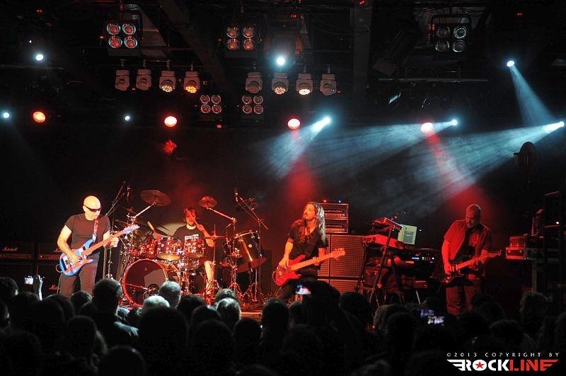 Satch je stopil na oder ob deveti uri in 20 minut zvečer! Cvetličarna odlično zapolnjena. Podobno je moralo biti pred dnevi v zagrebški Tvornici kulture! In mimogrede. Satrianijeva turneja, posvečena promociji novemu studijskemu dosežku »Unstoppable Momentum,« je dosegla Ljubljano v smeri Zagreb – Beograd - Ljubljana, in ne tako kot bi navadno pričakovali, se pravi Beograd – Zagreb – Ljubljana. Nekaj odvečnih kilometrov pa se figuri Satrianija na odru ni poznalo. Možakar je bil spočit, saj je skupina, dne 24.05.2013 »pavzirala«. Uvodni del koncerta je Satch teatralno prepustil ritem sekciji. Naj se ta sprva razživi. Tako se je prvi predstavil občinstvu Marco Minnemann, vrhunski bobnar, ki je leta 2011 za las zgrešil permanentno članstvo pri Dream Theater, ko so ti iskali zamenjavo za »pobeglega« Mikea Portnoya. Tu je znamenita Cool #9 in zasedba vzame poln zalet! Na odru poleg Satcha omenjeni Marco Minnemann (Vinnie Colaiuta, ki je položil bobne in tolkala za novi Satchev album, je očitno prezaposlen pri njegovem prvem delodajalcu Stingu), nadalje basist Bryan Beller… Halo? Minnemann – Beller? Zveni nekam znano. Prišteješ Guthrie Govana in dobiš The Aristocrats. Beller je sicer Vaijev kolega in kjer je Vai, je blizu Zappa in kjer je Zappa, je še bliže njegov sin Dweezil. Skratka, to so ti krogi najviše rangiranih svetovnih rock glasbenikov. In nenazadnje. Kjer sta Vai in Zappa, je tudi Mike Keneally, multi-instrumentalist, ki je Satrianiju že pomagal tudi v ljubljanski Hali Tivoli na koncertu novembra 2010, kot tudi Steveu Vaiju, ko je ta nastopil prav tako v Hali Tivoli davnega 13.04.2000. Ob Satchu torej zbrana senzacionalna super spremljevalna zasedba!