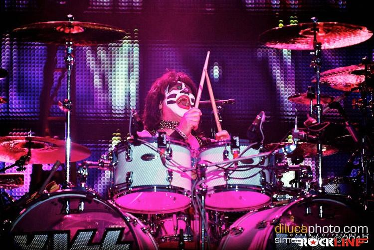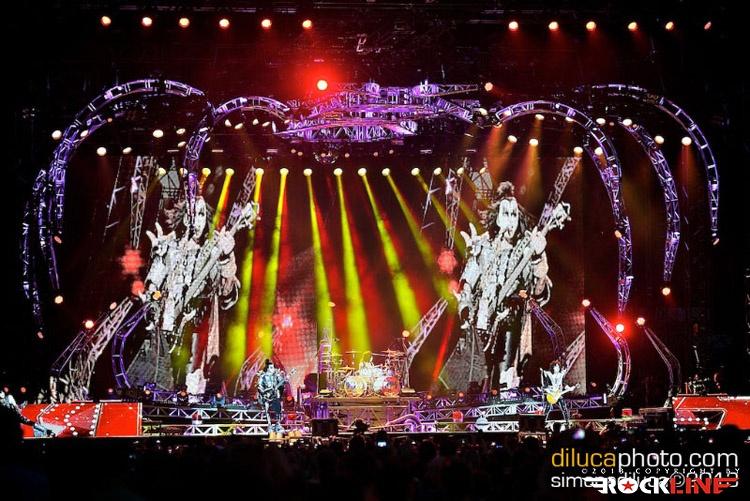 Pa smo imeli vseeno veliko za videti! Prvi veliki vrhunec je prišel s skladbo God of Thunder in Simmonsovim bas solom. Tehnično povprečen basist je v ospredje postavil svojo karizmo in že v štartu zavzel šovmakersko pozicijo, točko pa končal tik pod streho odra, kamor je pritrjen na kavlje poletel kot batman. Sledila je izvedba komada Love Gun, ki jo je Paul Stanley odpel kar na mešalni mizi, sredi morja oboževalcev. Šlo je za izredno ekstazičen moment, zanimivo pa je bilo opazovati publiko, ki se kar ni mogla odločiti, ali bo s pogledi spremljala Stanleya na mešalni mizi, ali preostalo trojico na vizualno popolnem odru. Izlet po škripcu do mešalke bi se lahko končal tudi tragično, saj je nek italijanski kreten splezal na ramena svojega prijatelja in Stanleya na poti nazaj skoraj uspel zrušiti. Magičnost druge polovice koncerta je le še povečalo morje konfetov med zabavljaškim hitom Rock and Roll All Nite, ki je že napovedal bis z Detroit Rock City in I Was Made for Lovin' You. Pri slednjem se je Geneu Simmonsu pripetila gromozanska napaka, saj je že po prvem refrenu ponovno želel podvojiti refren, svojo zmoto pa je ugotovil šele po nekaj dolgih sekundah. Živa komedija, s katero pa so Kiss nehote dokazali, da igrajo in pojejo v živo. Zaradi let so namreč njihovi vokali že načeti, zato se že dolgo pojavljajo ugibanja, koliko pomoči dobivajo iz mešalke. Epski Black Diamond je vedno dobrodošel v njihovi set listi, po kopici hitov v zaključni fazi koncerta pa zaradi svoje atmosferične narave nekako ni bil najboljša izbira za slovo od Ville Manin.