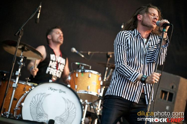 Sonce je pripekalo kot za stavo, ko so se prvi obiskovalci že gnetli pod odrom v pričakovanju, da se od blizu srečajo s svojimi glasbenimi idoli. A še pred glavno atrakcijo večera so okoli osme ure zvečer na megalomanski oder stopili RIVAL SONS, mlada kalifornijska rock zasedba, ki svoj navdih črpa iz bluesa in hard rocka sedemdesetih, zato ni čudno, da prejemajo močno medijsko podporo s strani Classic Rock magazina, na straneh katerega sem se premierno s skupino srečal tudi sam. Rival Sons so se odločno zoperstavili neugodnim razmeram (termometer je še vedno kazal preko 30 stopinj celzija) in s suvereno predstavilo dokazali, da se tudi manjše skupine lahko kosajo z zahtevno nalogo ogrevanja publike na velikih koncertih. Njihov stil vsebuje reciklažo bogate zakladnice Led Zeppelin idej, a z vokalnimi manevri Jaya Buchanana, ki bolj kot na Roberta Planta spominjajo na Paula Rodgersa (Bad Company). Hard rock s primesjo bluesa in retro zvenečimi kitarskimi rešitvami, ki se ga ne bi sramoval niti sam Glenn Hughes! S serijo štiriminutnih komadov avtorskega materiala, večinoma iz aktualnega albuma »Head Down« (2012), so Rival Sons z odliko predstavili svoje ime, ki bi ga znali privrženci klasične šole rocka v prihodnosti še velikokrat izgovoriti.