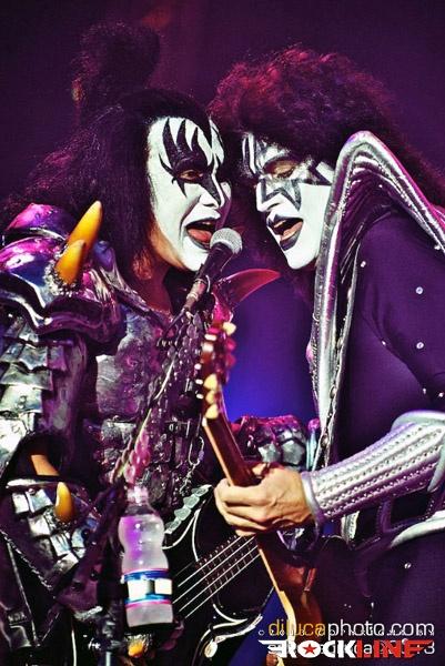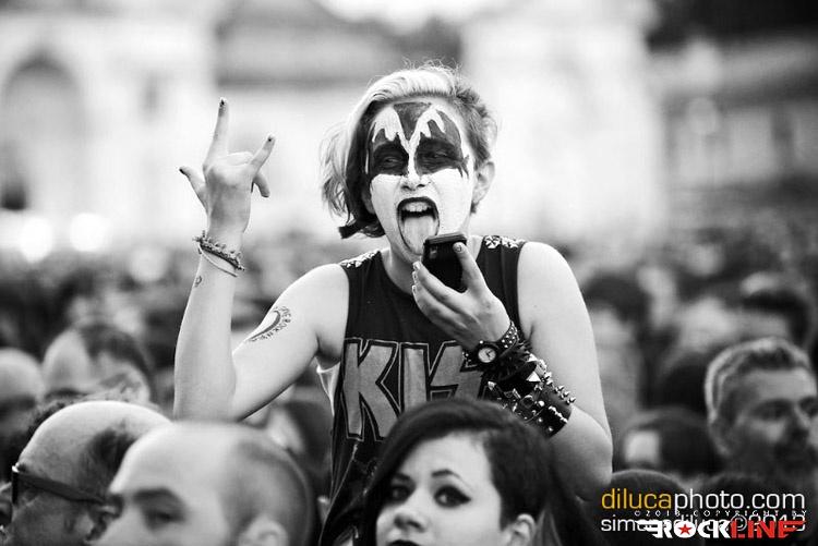 Kiss so glasbeni velikani, ki jim je svetovni trg uspelo osvojiti s formulo skrbno premišljenih tržnih potez, njihov skrajno korporativni pristop je bil za sredino sedemdesetih, ko so začeli s svojo potjo navzgor, malodane revolucionaren. Kiss taktiki, ki jih je povzdignila med največje, sledijo še danes. Nagovori frontmana Paula Stanleya tako ostajajo produkt patetične ameriške logike, saj ne izgovarja besed iz svojega srca, pač pa besede, ki jih želi slišati množica. Kako bi si lahko drugače razložil uvodni nagovor po skladbi Shout It Out Loud, ki je šel nekako takole: »Čeprav nismo še nikoli gostovali v vašem mestu, se počutim, kot bi bil od nekdaj del te družine«. Nekje na sredini koncerta je Stanley glasen odziv publike doživel s stavo na rivalstvo med bližnjim Vidmom do Milana, uporabil je torej identično finto kot že pred dvemi leti, ko sem jih gledal v Malmöju na Švedskem, s to razliko, da je takrat kot kost za glodanje obiskovalcem vrgel z omembo osovraženega Štokholma. Stanley in Simmons svoj manipulatorski posel obvladata do potankosti, zato jima množice ni bilo težko vpeti v vodila, v katera so obiskovalci ostali zagozdeni še dolgo po koncu koncerta.