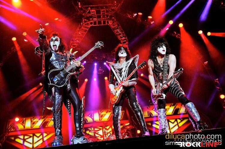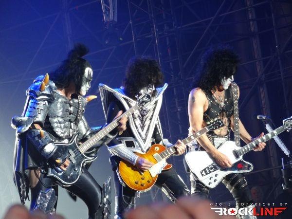 Čeprav so, zamaskirani v znamenito belo-črno kombinacijo obraznih poslikav, Kiss na promocijski turneji novega albuma »Monster«, sta se v igranem repertoarju znašli zgolj dve njegovi skladbi, Hell or Hallelujah ter Outta This World, pri kateri sta v ospredje s solo točkama stopila kitarist Tommy Thayer in bobnar Eric Singer. Kiss so še trdneje kot večina klasičnorockovskih velikanov zagozdeni v času svojega komercialnega zenita, zato je set lista gravitirala globoko nazaj v sedemdeseta, manjkali niso seveda niti hiti iz osemdesetih, kot sta Lick It Up in I Love It Load, tistim boljšim poznavalcem skupine pa so se sline zacedile predvsem ob igranju komadov War Machine in Heaven's on Fire. Zvočni pogoji so bili dobri, sploh v primerjavi s koncertom Iron Maidnov na isti lokaciji pred dvemi leti, ko so zvok odnašali sunki vetra.