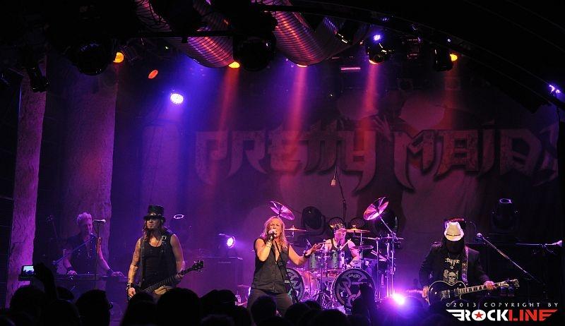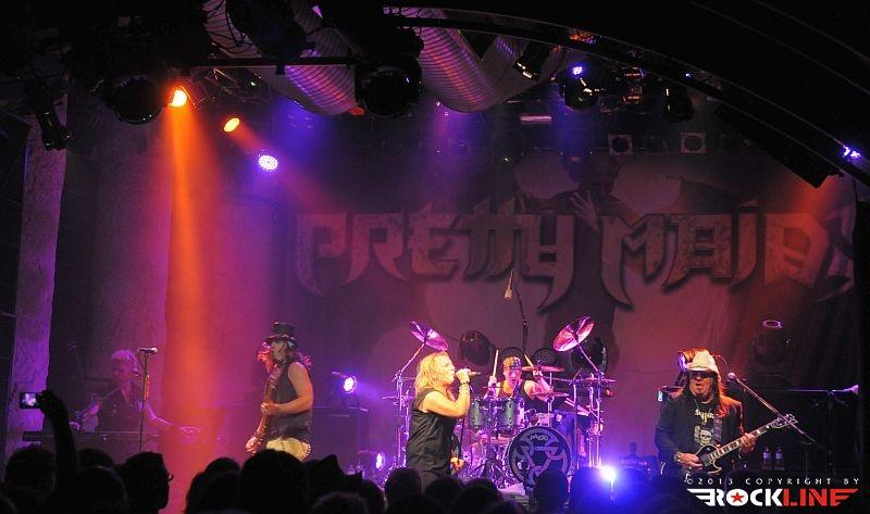 Malo daljši premor, kake dobre pol ure, smo izkoristili za sprehod na svež zrak, kakšen pirček, oder pa je po globini v tem času še malo »zrasel«. Na njem so se bohotili v svojih razsežnih dimenzijah bobni Allana Tschicaja-e. Ta je kakih petnajst minut pred enajsto zvečer prvi pozdravil publiko ob svojem prihodu na oder. Po pričakovanju so Pretty Maids strmoglavili nad publiko z novim albumom »Motherland«, ki sta ga uvodoma zastopali agresivna Mother Of All Lies in za njo bolj spevna I See Ghosts. Prva klasika je odjeknila že na poziciji številka tri, in sicer z naslovom Needles in the Dark - fantastika z albuma »Future World« (1987). Set listo je obilno zastopal novi album, z vmesnimi odkloni k predhodniku »Pandemonium«, s katerega so odjeknile Here Comes the Night, fenomenalna I.N.V.U, ter v dodatku po tihem pričakovana Little Drops of Heaven, ki se jo je očitno že oprijela etiketa obveznega vključevanja v nabor železnega repertoarja skupine. Preostanek set liste pa so v glavnem zastopali znameniti rušilci prvih dveh albumov. Vključitev klasike, kot med drugim Queen of Dreams, je predstavljala zagotovo eno od glavnih sladostrastij vseh zagrizenih fanov skupine tega večera v klubu Rockhouse.