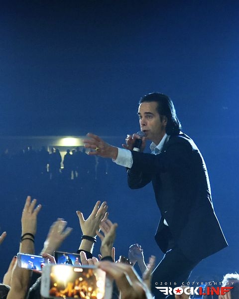 In res. V dvorana se je zatemnila v modrino, Bad Seeds so že stali na odru in skreirali kuliso, potem pa se je kot zadnji nanj povzpel Nick Cave in pritekel povsem do odra, kjer je s tribun in parterja konkretno završalo. V tem vrvežu so prevladovali visoki toni, ki so spominjali občasno na valovanje histerije. Seveda s strani kričavih pripadnic nežnega spola. Nick Cave je v svojem slogu hipoma potegnil občinstvo nase. Statua brezmejne žalosti, skrušenega in strtega srca, ki v vsej svoji bolečini in hrepenenju brezkončno tone do dna.