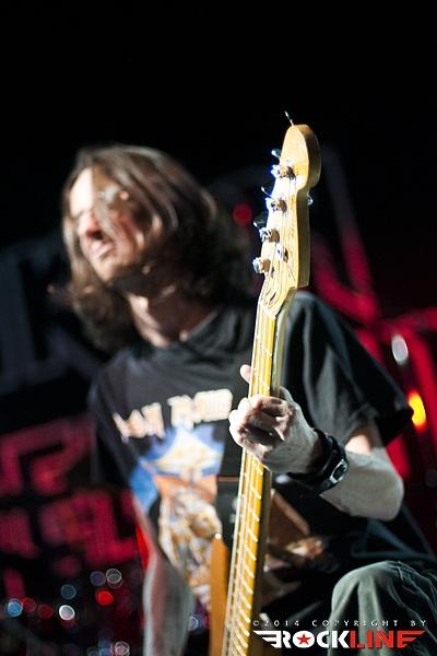 Z Iron Median sem se tokrat srečal tretjič; nazadnje smo skupaj na Metelkovi dobro leto nazaj ,dve minuti do polnoči, zaman čakali na konec sveta. Presenečenj tudi tokrat ni bilo. Fantom se vidi, da niso na odru samo zato, da bi osrečili občinstvo, ampak da igranje priredb Iron Maiden zelo osrečuje tudi njih. Posledično je vzdušje na odru popolnoma sproščeno, lahko bi celo rekli, da vlada evforija, ki pa se seveda nalezljivo prenaša tudi na vse pod odrom in ni ga bilo človeka v dvorani, ki bi le stoje opazoval koncert. Maiden klasike pa so tako ali tako že ponarodele in bučno petje publike je, kot na koncertih njihovih vzornikov, spremljalo cel koncert. Ker noben Maiden koncert ne sme miniti brez Eddija, je le-ta tudi tokrat delal družbo na odru, predvsem Matjažu, pri čemer se je kar nekajkrat zdelo, da kitaro igra sam Eddie! Maco je bil popolnoma v elementu, svojo Charvelko je drgnil kot pri norcih, na glavi kitare pa mu je delal družbo mali svetleči možicelj – na trenutke se je zdelo, da je padel popolnoma v trans in hipnotično odigral svoje delo. Tine, čeprav najvišje postavljeni, a obenem najmanj vidni član zasedbe, je nase opozarjal z ritmičnim bobnenjem in udarnimi prehodi, pri čemer ni prizanašal nobenemu kosu svojega seta, Alen pa je s svojim Fendrom pretresal notranje organe. Sergej pa kot vedno, Sergej! Pristno »trbovščino« med pavzami je spretno levil v Dickinsonov vokal med komadi in poskrbel za vrhunsko imitacijo in interpretacijo le-tega; kar nekajkrat je namreč, v že tako visokih vokalnih delih, le-te odpel še višje od originala in tako dokazoval moč in natančnost svojih glasilk. In za povrh vsega še ves čas odštekan kot zna biti le sam, za nameček pa nam je serviral še uvod v Sinatrino legendarno Delilah. Za moje pojme eden najboljših slovenskih frontmanov! Če bi že iskal dlake v jajcu, bi si morda želel le, da bi fantje naštudirali še kakšne druge skladbe iz obsežnega repertoarja svojih idolov. Tako luč, kot tudi zvok, sta bila pri obeh skupinah odlična in le želimo si lahko, da Bazen postane pogostejši gostitelj rockovskih prireditev.