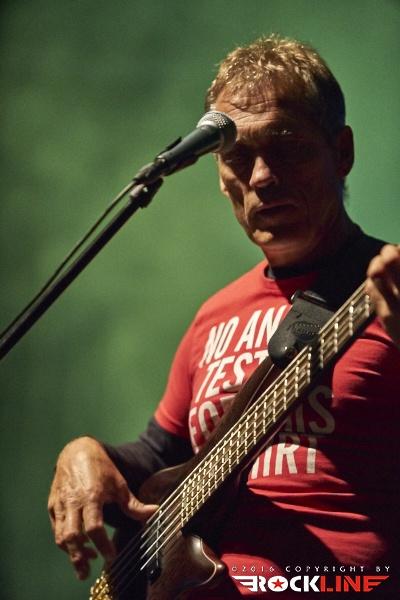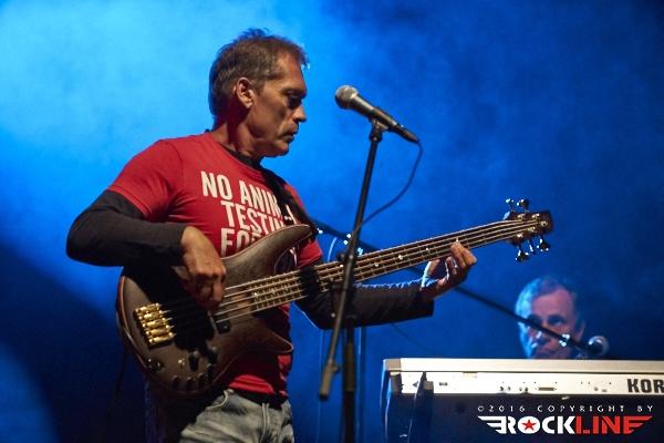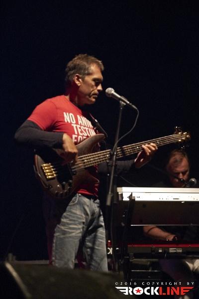 Skupina, ki je v začetku aprila letos v prostorih ljubljanskega CUK Kina Šiška velikopotezno obeležila prvo tridesetletko delovanja, je to pot nastopila z »okleščenim« programom oziroma na način, kot smo ga vajeni. Klasično,. Kot skupina. Torej brez posebnih gostov, pihalne sekcije ter seveda posledično s tem tudi? S krajšo koncertno minutažo. Bend je kanček počakal s pričetkom uvodnega dejanja, saj so se nad Kamnik zgrnili ob sedmi uri črni oblaki, ki so, tako kot dan poprej, pričeli neusmiljeno nalivati po prizorišču. Letošnji Kamfest nima ravno največje sreče z vremenom, a tako to gre. Narave se, pač ne da pretentati. No malo preko osme ure se nas je dežek le usmilil, vreme se je ustalilo in ekipa, ki ji po vseh letih še vedno poveljuje neusahljivi osnovni glasbeni vizionar, klaviaturist, aranžer, komponist ter seveda prvi pogonski motor skupine Andrej Pompe, je odprla koncert pred nič več, kot sto petdeset obiskovalci – k sreči zaprtih dežnikov (muhavo vreme je žal terjalo svoj davek). Z novo skladbo Kje je ta mož.