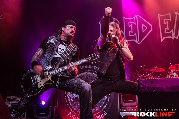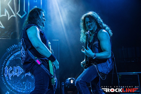 Ameriški heavy/power metal prvaki Iced Earth niso nikakršna neznanka slovenskih odrov, saj so njihovi precej pogosti obiskovalci, ne nazadnje so na odru, takrat še Metalcampa, posneli enega izmed treh koncertov, ki so svoje mesto našli na DVD paketu Festivals of the Wicked. Ne glede na to, da se je njihovih nastopov pri nas tako zvrstilo že kar lepo število, pa je to eden izmed bendov, ki bo pri nas vedno naletel na toplo dobrodošlico in tudi tokrat se je, kljub prvotno slabim obetom, Kino Šiška kar lepo napolnila. Publika je tako bučno pozdravila otvoritveni vikinški vpad z noviteto Great Heathen Army in tudi sicer je bend precej močno slonel na predstaviti lani izdanega Incorruptible. Glede na to, da ne gre ravno za diskografski presežek Iced Earth je bilo zato nekoliko škoda, da se fantje niso držali napisa o 30. obletnici benda in ponudili »best of« set. Prvi del koncerta je bil tako močno v luči Incorruptible, z Dark Saga klasiko I Died For You pa se je začelo potovanje tudi nekoliko dlje v preteklost. Stu Block je v sedmih letih odkar ga je šefe Jon Schaffer vzel pod svoje okrilje postal nepogrešljivi člen benda brez katerega si ga ni več mogoče predstavljati in mu gre tako zares čestitati, da je zapolnil gromozanske čevlje Matta Barlowa. Tokrat Block sicer ni bil v najboljši vokalni formi, saj je nekajkrat verze kar pojedel, je pa navdušil z nečloveškimi kriki, nekoliko manj pa z neuspelim imitiranjem Barlowa, kar je bilo boleče očitno predvsem v omenjeni I Died For You navdihnjeni po stripovski klasiki Spawn. Je pa zato tokrat osupnil in presenetil Jon, ki je letos srečal abrahama, pa na odru kljub temu deluje naravnost zverinsko, predvsem ko se pogled ustavi na eni najmočnejših desnic v metalu, kar je bilo očitno v naravnost brutalnem rifovskem žaganju v izjemni Vengeance Is Mine. Eden izmed top 5 ritem kitaristov v metalu. Pika. V nadaljevanju je sicer lepo sedla Horror Show klasika Dracula, ampak ali je res to edini komad s tega albuma, ki si zasluži igranje v živo? Odgovor je seveda ne, je pa bend zato v zaključku rednega dela presenetil s klasiko Angels Holocaust, v kateri se je z vražjim soliranjem izkazal najnovejši član benda kitarist Jake Dreyer (ex-White Wizzard, še bolj pa priporočam Witherfall) in epskim potovanje z Night of the Stormrider epom Travel in Stygian.