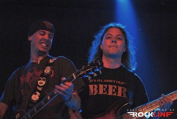 Drugi po vrsti so nastopili BLACK DIAMOND, projekt dveh srčnih novomeških kitaristov Igorja in Nejca, ki sta po letih truda ter znoja pomladi splavila dolgopričakovani prvenec »Last Man Standing«. Po njegovi premierni predstavitvi v Orto baru pred nekaj tedni je bil tokratni nastop Črnega diamanta šele njihov drugi sploh, zato je izmed vseh nastopajočih predstavljal verjetno največjo ekskluzivo. Kvintet na odru je udaril s singlom Power of Mind, ki je v notranjost Cvetličarne privabil presenetljivo veliko radovednih ušes. Veliko pravim zato, ker Black Diamond gojijo kompleksen stil heavy metala, ki za popolno osvojitev potrebuje mnogokratno poslušanje. V nasprotju z Orto barom je imela skupina na odru veliko prostora, kar je dobro delo predvsem frontmanu Žanilu Tataju – Žaku, ki za popoln zagon svojega motorja pač potrebuje na kožo pisane mu pogoje. Gre za izrednega perfekcionista, kar je dokazoval vsak trenutek nastopa, tudi pri vokalno zahtevni epski kompoziciji Edge of Sanity. Black Diamond zaradi projektne naravnanosti svoje eksistence malček šepajo na samozavesti izvedbe, a jih po drugi strani rešuje intšrumentalna genialnost prav vsakega izmed članov – na čelu z nezmotljivo ritem sekcijo Klemnom na bobnih in Urbanom na bas kitari. Skupina je imela na odru tehnične težave, manjko tonske vaje je bil opazen v obliki namrščenosti njihovih čel. Zvočni pogoji na odru so bili slabi, kar je zaradi progresivne narave Black Diamond izraza še toliko bolj nerodno, a so se kljub temu iz dane situacije izvlekli prekleto dobro! Zaradi časovne stiske celotnega večera so bili primorani konkretno skrčiti igran repertoar, pol ure dolg nastop so zaključili z eno svojih najmogočnejših kompozicij, Dreams of Tomorrow. Dober nastop, ki pa mu je za piko na i manjkala konkretnejša minutaža. Black Diamond, se vidimo naslednjič!