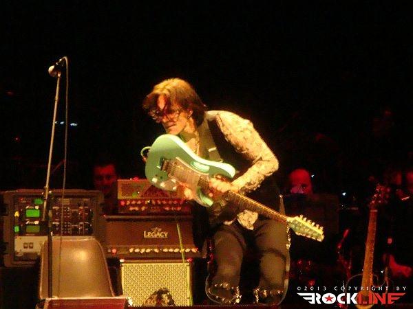 Prestižno prizorišče tržaškega teatra Politeama Rossetti je napolnila konkretna množica radovednih. Parter sicer ni bil razprodan, deležen pa konkretne zapolnitve. Vse oči uprte v heroja obče planetarnega kitarskega ekscesa. Kje je? Kdaj se primaje na oder? Ne takoj. Uvodni del je pripadel orkestru. Nekaj minutni pletež je bil urezljan tako, da bi lahko namesto Vaia na oder brez težav pristopicljal legendarni Frank Zappa, sicer znameniti Vaijev mentor. Pa se kočno prikaže »little Stevie« in na silno grob način predstavi svoj kitarski jezik! Skozi uvodno Racing The World, sicer novo skladbo albuma »The Story Of Light«. Skovanka »flex-able«, ki usodno spremlja Vai-jev umetniški karakter od pamtiveka, ne bi mogla bolj priročno učinkovati, kot prav v umetnikovi uvodni predstavi. Vai je namreč v uvodu igral vse na karto kombiniranja neverjetnih prijemov z levico po kitari, ki so bili vse drugo prej kot akordni prijemi, vse to početje, pa je kombiniral z rabo tremolo ročice, ki jo je vrtel in ukrivljal v vseh mogočih smereh. Že takoj uvodoma je teatralno, lovil mikrofonijo v prostoru. In kot omenjeno. Vai se je predstavil kot zelo grob uporabnik kitare. No njegova grobost do kitare v preteklosti je tako ali drugače dobro znana. V zgodovini svojega odrskega pojavljanja je Vai v svojem znamenitem odrskem šov teatru razlomil že lepo število kitar.