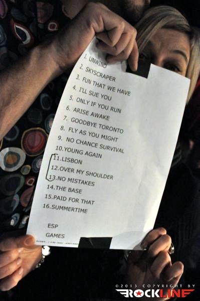 Odigrali so osemnajst skladb (po devet z vsakega albuma), od tega dve v dodatku. Otvoritvena skladba ''Unwind'' nas je popeljala v najstniška leta Banksovega ustvarjanja in bi jo lahko brez problema podnaslovili s ''pesem o ljubezni, ki je ostala, in razmerju, ki ga ni več''. Skladbo je Banks zaigral prvič na svoji turneji in je naravnost idealna uvodna skladba, ki med seboj odločno prepleta pompozne matrice trobil in melaholičnih klaviatur. Najstniške dojemanje ljubezni se z leti spremeni v kompleksno čustvo in o tem tudi govori skladba ''I'll Sue You'', ki so jo zaigrali kot četrto. Pesem zagotovo velja za eno najboljših skladb, ki jih je kdajkoli napisal Banks. Odlikuje jo izraziti smisel za stopnjevanje napetosti, prav tako kot šesto po vrsti, molovska ''Arise, Awake''. Mesto med njima je dobila velika uspešnice s prvega albuma, življenjsko-didaktična ''Only If You Run''. Ta te ne sooči samo z dejstvom, da si sam odgovoren za lastno življenje, temveč ti začrta tudi osnovne smernice, kako se z njim spoprijeti. Po vsaki izmed omenjenih odigranih skladb je Banks tudi predstavil po enega člana spremljevalne zasedbe.