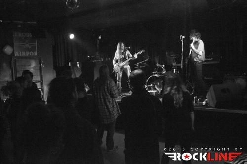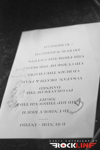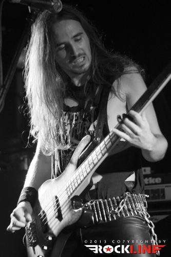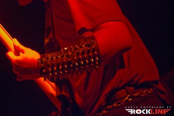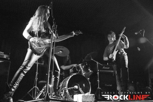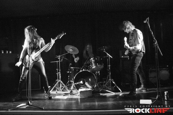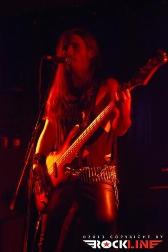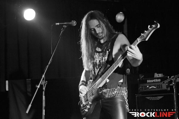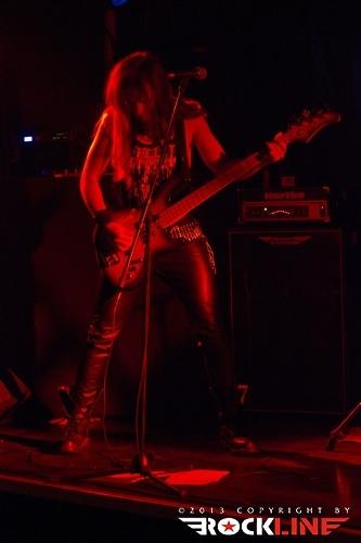Kot prvi so na oder stopili trije mladci, odeti v starodobne usnjene uniforme ter okrasje, katerega je bilo v osemdesetih v izobilju najti na slehernem predstavniku pravovernega metala. Ljubljanski trio Hellsword prisega na rustikalno načelo ortodoksnega speed, doom pa tudi blasfemično potemnjenega black metala, v dobi, v kateri pa praporščaki metala izgubljajo identiteto zaradi hibridnega mešanja z mnižicam bolj všečnimi podžanri glasbe ali pa so preobremenjeni bolj s svojo pozo, imaginarijem in še čim podobnim, so trpeli vsebina, esenca in kakovost servirane godbe, vse pa je začelo zveneti, kljub precej bolj dovršeni produkciji, podobno in nevznemirljivo enolično. Za bobne sede Mark Massakre, ki mu par napotkov poda še basist ter vokalist Mike Manslaughter, na desni strani odra pa si stratcasterja dokončno uglasi vidno vznemirjeni Ironfist in stampedo se začne. Po štirih letih brušenja in koncentriranja predihane tinkture starodobnih Venom, Bathory, Hellhammerjev ter Celtic Frostov so fantje, opasani z demo EP-jem Blasphemy Unchained, izklesali sebi lastni izraz, ki je bolj kot demonični obsedenosti black metala bližje speed metalskim začetkom iz ranih osemdesetih ali pa bolj brutalizirani različici Mötörheadov, trojec pa funkcionira zvočno suvereno, odrska igra in poziranje pa jim, hvala srečnim naključjem, ne gre najbolje. Sam sem prišel prisluhnit glasbi in ne ocenjevati dramske igre. V predvidljivem temu Unholy Reicha se Mike in Ironfist dokažeta kot glavna nosilca melodije, Mark pa na rudimentiran nekompliciran način postreže s solidno bobnarsko metriko, Hellsword pa na en bizaren način prikličejo v spomin tudi podobo zgodnje Metallice okoli albuma Kill 'Em All, na zgodnje Exodus ter celo na prve posnetke skupine Slayer. Verjetno zaradi nebrušenosti patine zvoka, ki bazira predvsem na nabrušenem depilacijskem vintage zvoku Marshalla ter Ironfistovi skrbno oddrgnjeni seriji rifov, prav slednji pa ta večer prav konkretno preglasijo Mikeove vokale ter stihe o velikem vladarju pekla. Odmerek novejših stvaritev in napoved novega studijskega dela, EP-ja Sounding Of The Seventh Bell napovesta skladbi Rip Through The Night ter solidna zombijada skladbe Graves Of The Damned, v kateri se receptura dela, kjer mora poleg ritmičnega znanja svoj solistični talent pokazati dobro podkovani, a vidno nesproščeni Ironfist, ne spreminja. Dobro izvedeni kolaž starodobnih ritmov in zvokov na trenutke zašepa zaradi slabšega ozvočenja, podporo trojici na odru pa v prvih vrstah dobro poda četrti član večera – sprva nekoliko pospana, a dobro razpoložena publika. Zlovešča gonja za hitrostnimi rekordi se nadaljujejo v maniri Lemmyja Killmisterja s skladbo Marching Towards The Heaven (Satan, Death & Fear), mi pa pozornost bolj konkretno pritegne predvsem skladba Burn The Chapel, ki premore več strukturnosti in zelo konkretno solažo. Ostalo doziranje in začinjanje večera z naivnimi odmerki že preživetega, a vsekakor zabavnega okultizma malce pretečenega datuma, je bilo za ščepec premalo, da bi na plan privrele vse strasti ter bi se človek povsem suvereno podal v pododrski boj za preživetje, bolj statična publika pa je nižala temperaturo v sicer s potom in feromoni prežeti Gromki. Razbolelega vratu in premene postavk ne dosežeta niti sklepni predelavi večera. Kot prva iz zvočnikov odhrumi dobro tempirana predelava Švicarjev Hellhammer ter njihovega Messiaha, na katerega, kot ata na mamo, pade malce posipa iz zlatega obdobja prvega vala britanskega heavy metala – Witching Hour zloglasnih satanistov Venom. Smo dobrodošli v Peklu? Absolutno! Hellsword svoj paket zabave sklenejo v slogu, a brez presežkov, zaradi katerih bi lahko sicer talentiranemu in pravovernemu glasbenemu trojcu lahko že po prvem posluhu zatikal medalje za dosežke. Strast je vsekakor faktor, na katerem se lahko gradi nekaj lepega in dobrega, fantom pa tega vsekakor ne manjka, le na odru jo ne znajo povsem izkazati ter prenesti na publiko, pomislim, ko se začne leteča menjava na odrskih deskah.