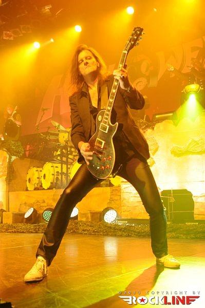 A jasno tokrat smo čakali le dvoje mojstrov nemškega power metala, prve morda še bolj kot druge, saj so nemški težkokategorniki Gamma Ray z legendarnim Kaiom Hansenom pri nas tokrat nastopili prvič. Pričakovanje je bilo tudi in predvsem zaradi tega veliko, in toliko lepše je bilo, ker so ga Gamma Ray izpolnili že na samem začetku s Power Plant rušilcem »Anywhere in the Galaxy«. Publika je z energičnim in odlično razposajenim bendom dihala od samega začetka in četverico večkrat prekinila in vidno presenetila s spontanim skandiranjem »Gamma Ray, Gamma Ray!« Karizmatični frontmen in legenda nemške metal scene Kai Hansen nam ni ostal dolžan, za kar je poskrbel s popolnim animiranjem publike, fantastično vokalno predstavo in sijajnim repertoarjem, med katerim ni manjkalo himen, kot so »Men, Martians and Machines«, »The Spirit«, »Empathy« in »Rise«. Kaiu se je ves čas na obrazu raztezal širok nasmešek, skupina pa je z odra izražala skoraj otroško veselje do igranja. Manjkalo ni seveda niti skakanje, povzpenjanje na ploščadi na obeh straneh bobnarske baterije novega bobnarja Michaela Ehreja, »manowarsko« poziranje basista Dirka Schlächterja ter »Judas Priest« miganje z boki. Prav slednje je ob sijajni izvedbi kitarskih harmonij dueta Kai Hansen/Henjo Ricther poskrbelo za največ navdušenja. Ker so Gamma Ray pravkar izdali novi EP "Master of Confusion" (recenzijo lahko preberete TUKAJ), so nam postregli še dva čisto sveža komada, naslovnega ter »Empire of the Undead«, ki po dokaj povprečnem To the Metal! obetata nov Gamma Ray rušilec. Kai in druščina so publiko dvignili do stropa, ko je Kai z znamenitim kitarskim uvodom napovedal železno Helloween klasiko »Future World«, se poslovili s klišejsko in povprečno odo metalu »To the Metal« in se v velikem slogu dokončno poslovili s fantastično »Send Me a Sign«.