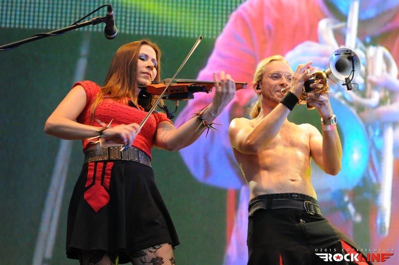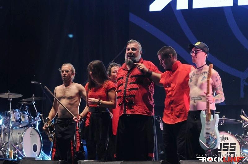 Kljub prepričljivem nastopu Russkaje nas je zanimalo, kaj se dogaja še drugje po mestu, zato smo se sprehodili do odra Club, kjer so se na svoj nastop ravno pripravljali francoski Attentat Fanfare. Že s svojo podobo so zbujali kar precej pozornosti, kajti vsak član skupine je nosil svoj živalski ali drugačen pustni kostum, ki pa so jih tekom nastopa, morda tudi zaradi velike vročine, sproti postopno odlagali. Z mešanico različnih instrumentov so ustvarjali zanimivo zmešnjavo poskočne alternativne etno glasbe, ki je sicer sedečo množico odra Club počasi in z vztrajnim nagovarjanjem množice iz odra dvignila na noge in spodbudila k plesu. Mi pa smo se počasi spet prestavili pod Zlatorogov oder, kjer smo ujeli še zaključek nastopa Russkaje, ki je do tega časa pod oder privabila kar konkretno število poslušalcev. Sledil je krajši premor, množica pod odrom pa se je še bolj zgostila, ki so na oder stopili člani skupine Mi2.