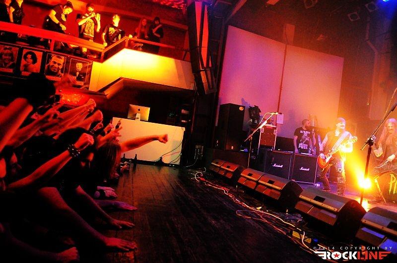 Klub Sloga je lociran v neposredni bližine ene glavnih sarajevskih avenij Ulice maršala Tita in točno nasproti Ministrstva za notranje zadeve. Nekdaj je bil to kino, danes pa je dvorana namenjena predvsem koncertom, tokrat prvič po dolgem času znova koncertu metalskih tonov. Ker je dvorana pač še vedno osnovana okrog arhitekture kina, se razprostira v dveh nadstropjih, pritličju in zgornji etaži po kateri so razporejeni lični separeji, ki ponujajo odličen razgled na dvorano in oder. Zaradi slovesa, ki ga je imela ljubljanska Sloga smo, preden smo se udobno namestili v separeje, sedeže izdatno pregledali, hehe. Pritličje je delovalo povsem drugače, saj ni bilo povsem jasno kako se bo publika znašla med mizami in stoli, ki so bili porinjeni skoraj povsem do odra. Parterja za mosh ni bio prav dosti, smo se pa ob ogledovanju kluba zaleteli v kitarista Warbringer Balmora Lemusa, s katerim smo padli v super debato, natresel pa je nekaj zanimivih anekdot od katerih je izstopala predvsem tale – Lemus je s svojim nekdanjim bendom Exmortus pred leti nastopal v Los Angelesu, v času ko je thrash ravno doživljal svoj veliki povratek. Koncert na katerem so igrali Warbringer, Fueled By Fire, Toxic Holocaust, Bonded By Blood, so si ogledale tudi živine raznih založb in pogodbe so po koncertu dobili prav vsi le Exmortus ne.
