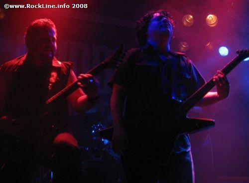 Bila je pozna ura. 00:15! Ljudem je krepko pisalo na obrazih, da jih počasi zmanjkuje. Utrujeni od garanja. Ni kaj. Na odru so naposled Manilla Road. Headlinerji koncerta, s svežnjem ure in 40 minut. Presenečen sem bil, kajti pričakoval sem trio. Trio, ki je posnel tudi najnovejši album "Voyager", ki niti še izšel ni. Izide namreč teden po tem nastopu skupine v Italiji (29.02.2008, založba My Graveyard Records). A na odru je stal kvartet! Za mikrofonom se je tako znašel Bryan "Hellroadie" Patrick, sicer brat Harveya Patricka (bas kitara), ki so mu nadeli vzdevek "crow" (vrana). Tu je tudi malo mlajši Corey Christner (bobni) in pa seveda, človek brez katerega Manilla Road, lahko jutri zaprejo svojo firmo! Nesmrtni kitarist, razvojni ideolog in šef skupine Mark "Shark" Shelton. Skratka pogonska lokomotiva skupine. Čaka nas marš skozi epski temni metal, kot ga poznajo le Manilla Road. Patrick je izredna pridobitev. Shelton se je lahko v celoti posvetil soliranju in v splošnem delu na kitari. Patrick je tudi boljši vokalist, ki lahko tako kot Shelton artikulira glas in variira preko epsko čistega, izraznega zlasti v srednjih legah, začinjenega z odkloni k visokim čistim "scream" štosom, kot tudi tistim brutalno vzetim. Ekstremnega gneva, ki pa nimajo veze s slučajnim growlanjem. Nič manj karizmatičen vokal od Sheltona, barvno izredno posrečen in kompatibilen s slogovno usmeritvijo skupine. Brez prdca! Nov odličen zvok. Starokopitni metal zvok, z adventivno raziskovalno ritem linijo, ki nenehno išče prostor za prehodne prevrate, poudarjene globine skozi intenzivno rahlo distorziran rožljajoč bas. Fenomenalna platforma. Manilla Road so znani mojstri dualne črno bele atmosfere. Dva pristopa sta tu osnovna, ki se zlijeta v popolno zgibanko. Eden je tisti, ki ga z lahkoto ustvarijo, ko se zatekajo k manj melodičnemu rifffanju, ki ga vodi temačen vokal, sonce pa posije že samo v Sheltonovih kitarskih solažah, ki so neverjetno melodične, povsem klasičnih form. Shelton je briljiral znotraj solaž, ko se je povsem vživel, spozabil in domala že prav grobo rokoval s kitaro. Mračni motivi se kaj nenadoma zavrtijo v povsem drugačno smer epske melodije. Privlačno za italijansko publiko, ki je mahnjeno na arije!