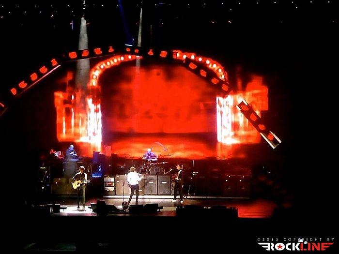 Ura je odbila petnajst čez osem, ko so na oder brez predhodnjega pompa prikorakali McCartney s spremljevalno ekipo glasbenikov in koncert otvorili z Eight Days A Week. Izbira poskočne skladbe za začetek je bil zadetek v polno, je šlo pa v vseh pogledih za presenetljivo izbiro, ne samo, da izhaja iz začetnega obdobja Beatlov, tudi sicer McCartney te skladbe pred aktualno turnejo v svoji karieri ni preigraval še nikoli. Na odru so McCartneya spremljali isti glasbeniki, ki smo jih gledali že pred dvemi leti v Bologni: Rusty Anderson in Brian Ray na kitarah, Paul Wickens na klaviaturah in orglicah ter Abe Laboriel Jr. na bobnih. Ves čas koncerta so šefu nudili zanesljivo glasbeno oporo, sploh simpatičen je bil bobnar Laboriel, ki je tudi med premori z udarjanjem po hi hat čineli držal ritem in čakal na McCartneyevo stadnardno povelje »ena, dva, tri, štiri«, s katerim so pričeli večino skladb.