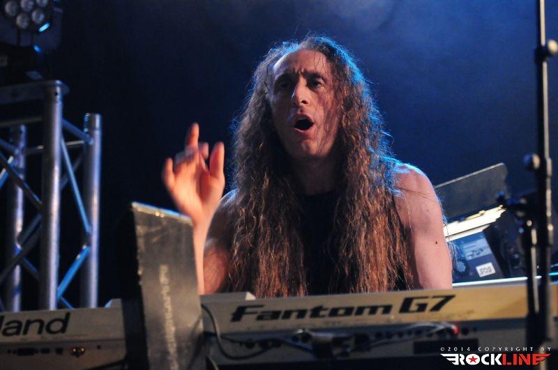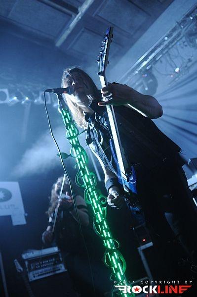 Ura je osem. Prostor je nabit. Dobesedno. Na oder pa ne stopijo Rhapsody Of Fire, pač pa še ena predskupina. Prav tako italijanska. Folk metalci Elvenking, ki smo jih nekoč davno tega leta 2008 prestregli na zamejskem festivalu v mestecu Moraro (Morarock festival), blizu stare Gorice. Elvenking prihajajo iz mesteca Sacile, k je locirano v Furlaniji-julijski krajini in provinci Pordenone. Torej nedaleč stran od slovensko italijanske meje. Sekstet je v polurnem nastopu predstavil pravkar izdani studijski album »The Pagan Manifesto«. Zmes prepoznane bombastike, s katero je vselej simfonično okrašeno italijansko dojemanje metal glasbe, korenito podprto s teatrom tradicionalnih prvin melosa keltskih folk elementov, je dostavilo izkazilo o velikih glasbenih izkušnjah skupine, ki je vešča tako glasbenega aranžiranja, kot tudi odrske izvedbe. Imeti sedem studijskih albumov v žepu ni nedolžna stvar. Skupna si je več kot le prislužila vlogo prve predskupine na tej turneji! Izredno suveren nastop.