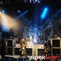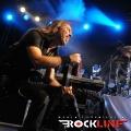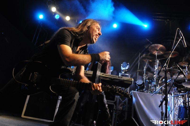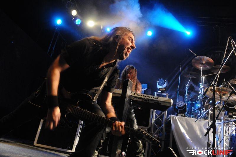 Rhapsody Of Fire so ob deveti uri stopili na oder in atmosfero v dvorani dvignili na znatno višjo raven. Ne glede nato, da se Slovaška publika ni kdo ve kako temperamentno odzivala na teatralno vihravost odlično razpoloženega pevca skupine Fabia Lione-a, je kar nekaj prevretih glav v pročelju parterja zamikastilo in pokazalo celo obvladovanje verzov nekaterih refrenov. Rhapsody Of Fire so po pričakovanju izvedbo materiala podprli s spremljavo matric, ki je vključevala nekatere nasnete klaviature, zborovske vokalne harmonije in seveda celotne orkestracije. Poleg originalih članov pevca Fabia Lione-a i šefa skupine ter klaviaturista Alexa Staropoli-ja, zaokrožujejo zasedbo Rhapsody Of Fire v današnjem času še dolgoletni nemški bobnar Alex Holzwarth, kitarist Roby De Micheli in po novem Holzwarthov brat Oliver. Naj omenimo, da sta brata Holzwarth izjemno izkušena glasbenika. Glasbeni gurmani nemara poznate njuno progresivno rockovsko zasedbo Sieges Even, ki sta jo zaradi premalo zanimanja po sicer odličnem zadnjem studijskem albumu bila primorana razpustiti. Ne glede na to, pa izjemne odlike, ki jih posedujeta ta dva glasbenika ne ostajajo spregledane ali prezrte. Alex je že vrsto let bobnar Rhapdosy Of Fire, Oliver pa koncertni basist nemških power metal velikanov Blind Guardian. Po pričakovanem uvodnem Rising From Tragic Flames z najnovejšega albuma, so Rhapsody of Fire docela presenetili z vključitvijo svoje klasične himne Land Of Immortals s prvenca »Legendary Tales« (1997). Temu je kaj hitro sledilo še eno sladko presenečenje starejšega izvornega datuma, ko je bend prešel v izvedbo še ene klasike imenovane March Of Swordmaster iz albuma »Power Of The Dragon Flame« (2002). Bend je odlično uigran. Ritem linija bratov Holzwarth deluje natančno kot najbolje naoljena kolesca švicarske ure, Alexovo znamenito kotaljenje dvojne bas boben stopalke postaja že kar znamenita zaščitna znamka skupine! Tu je izvrstni kitarist Roby De Micheli, ki je s preklemano hitrostjo in natančnostjo dobesedno osupnil. Vsekakor pa je glavnino pozornosti prevzemal vživeti Fabio Lione, s svojim značilnim operetnim pristopom. Vokal mu je tega večera odlično služil in Rhapsody Of Fire so v celokupnem seštevku priredili odlično enourno popotovanje skozi svojo bogato diskografijo, nato pa sklenili nastop še z eno klasiko studijskega prvenca, potihoma pričakovano Emerald Sword.