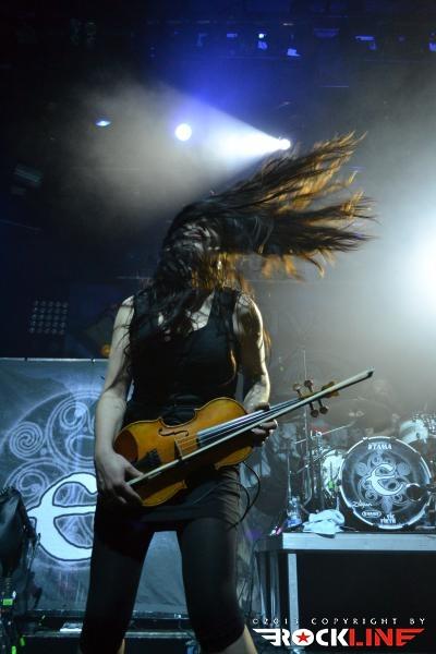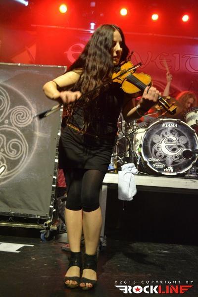Eluveitie z novim albumom »Helvetios« (2012), so ponesli večer na še višjo raven evforije. Prostor v dvorani se je nabasal izdatneje, narod je sproščal znatno več kravala. Atmosfera je bila izjemna, ko si gledal roke v zraku na ukaz vodje skupine Chrigela Glanzmanna. Križanec gotenburške šole melodičnega death metala in keltskih folk elementov pastorale, z rabo tradicionalnih instrumentov, kot so najrazličnejše piščali, dude, mandola, bodhran, gaita, pa so to pot stopili na oder brez obolele Anne, zato je zasedba (normalno osmih članov) nastopila brez spremljave hurdy gurdy spremljave. Eluveitie imajo že toliko rutine za seboj, da je bil ta postanek za njih nov dogodek sprostitve, novega odrskega triumfa. Izjemno samozavestni Chrigel je v velikem slogu držal na povodcu poblaznelo publiko, zasedba je v uri dostavila v skladu s pričakovanji, kruha in iger lačni publiki, skozi izredno smelo in kompaktno odrsko držo. Brez presežnikov, a v skladu s hotenji prisotnih in pričakovanji.