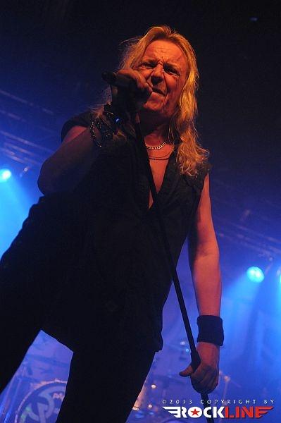 Kakorkoli. Zasedba v postavi Lessmann (vokal), Ziller (kitara), Chris »Yps« Limburg (kitara), Uwe Kohler (bas kitara) in rosno mladi bobnar Harry Reischmann, ki je v lanskem letu zamenjal predhodnika Dominika Hülhorsta, je odprla svojo predstavo z enim boljših trenutkov neposrečenega albuma iz leta 2009 »The Räuber«. To je bila skladba Bells Of Freedom. Publika je strnila vrste in stisnila pesti v zrak za »domače«. Prvo vprašanje, ki se je porodilo, je bilo vprašanje o vokalni formi Lessmanna. Leta 2007 je namreč v Trevisu zapustil bolj klavrn vtis. Hipoma me je demantiral. Treviso je bil očitno le slab dan za pevca. Že uvodoma je njegov vokal odlično razvijal moč v vseh sekvencah kovanja vodilnih napevov.