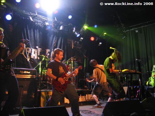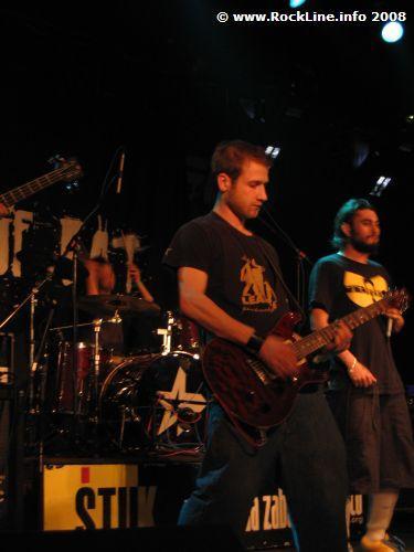 Zeroscape so tako ob 21 uri in 30 minut začeli igrati pred dvanajstimi ljudmi. Žalostno, saj fantje zanimivo prepletajo reaggae, screamo punk ter metal. Definitivno vredno poslušanja (mimogrede, fantje so na povabilo Leaf-fat zaigrali tudi kot predskupina v četrtek, 24.aprila v Orto baru). Med svojimi dobrimi petintridesetimi minutami nastopa, so nam zaigrali predvsem komade z njihove zadnje plošče "…And If This Is The End I Will", med katerimi je najbolj odmeven "Uncle Bush Wants You". Mislim, da mi o tem komadu ni treba posebej pisati, saj njegov naslov pove vse. Pa tudi "Till Death Do Us", "Skunk And Live", "And This Is The End I Will", "Outnumbered". Binski je s svojim zanimivim vokalom pripravil tistih nekaj prisotnih (če že ne prisebnih), da so kaj kmalu začeli migati. Ne razumem, kako lahko folk na pankrok koncertu stoji pri miru, ko se ob taki muziki kar koža naježi. Ne zaradi srha, temveč zaradi užitkov.