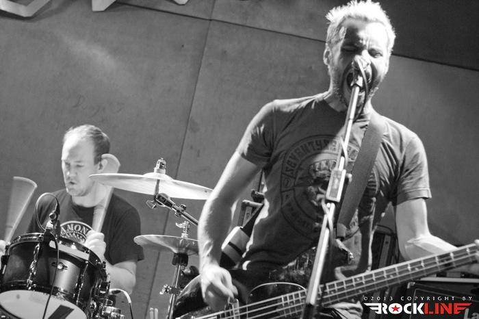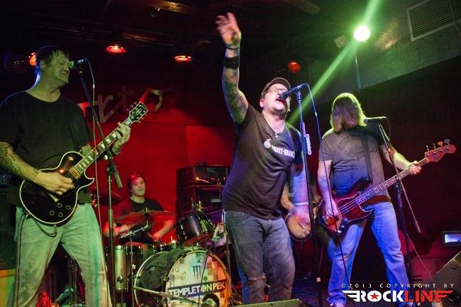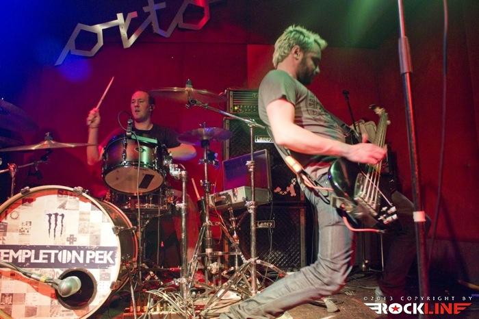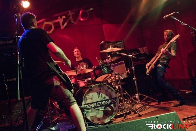 Prvi šok, ki ga je večer še pred nastopom mladih zagretih Britancev razkril, je bil ta, da nekega pretiranega množičnega pritiska gneče pod odrom ne bo čutiti. Kakih dvajset zablodelih radovednežev se nas je razkropilo pod majhnim odrom Orta, prav brez posebnega aplavza ali navdušenja pričakali prihod birminghamskih mladih upov Templeton Pek. Trojec, ki ga sestavljajo vokalist in basist Neal Mitchell, hiperenergični in visoki kitarist Kev Green ter sloki in udarni bobnar Jon Keen, zasede strateške pozicije na odru in s skladbo Trial And Error, po uvodnih zapletih z uvodnim semplom, začnejo braniti barve tretjega albuma Signs, ki je sveže izšel za Century Media Records. Spevni udar kitarskih rifov, ki bi potrebovali malce več debelin in teže, po salvah depilicajske ostrine kot britev ostrih zvokov, precej bolj potentni zvoki basa ter korektnega Nealovega vokala se ob menjavah ritma in konkretnem flirtanju z ameriškimi FFAF ter Rise Against (sam pod celoto slišim celo malce Britancev Bullet For My Valentine in celo zametke Lemmyjevih semen Ace Of Spades proti koncu komada ...) v avditoriju ne zgodi kaj prida pretresljivega. Rahli aplavz in fantje ga, kljub »sreči, da so po dolgoletnih prizadevanjih končno na tej strani Alp«, morajo pičiti dalje brez prave evforije množic pod odrom. Barriers je prava odločitev za nadaljevanje, če so prepreke fizično pred pogumnim trojcem. Udarni HC z melodičnim topilom konkretno pretrese Orto, uigranost trojca pa kljub trudu, zaradi katerega se Kev ob izdatnem potenju domala topi ves čas ter izgoreva do točke samovžiga, pokvari rahlo neuravnotežena zvočna slika, ki se ne izboljša niti nadalje. »Time waits no man ...« spevno kriči Neil in šov se tako nadaljuje dalje. Izjemno udarni Dark Matter pokaže malce adutov preteklosti, Low in spevni krik po prebujenju s skladbo Wake Me Up pa dokažejo zmožnost prilagoditve birminghamskih upov, ki so na poti preboja med elito punkerjev sedanjosti, je pa res, da so Templeton Pek prirejeni na splošni okus ameriške mladeži in ne toliko na evropski nekoliko drugačni in bolj surovi okus. Devetdeseta so nekoliko odcvetela in razen bolj eksplozivnih trenutkov nostalgije je bolj malo tistih, ki bi drgnili So-Cal skladbice durhmarš na svojih iPodih. Kljub temu pa sam v primeru Templeton Pek vidim primerek dobrih tekstopiscev ter dobrih zvočnih kameleonov, ki znajo svojo godbo dobro plesti dalje, pa če gre za kratke izbruhe energičnosti, kot so 30 Seconds To Far ali pa bolj spevni in efektivno mehčani baladni HC briljanti skladbe What Are You Waiting For?, bolj surovi Slow Burn ali obljuba varnosti s skladbo Alive (Promise Is Safety), med katero se Neil z odra zvezdniško sprehodi med zbeganimi ljubljanskimi zakoreninjenimi monoliti do šanka, na katerega spretno spleza ter med kitarsko solažo malce pozira zabave in presenečenj žejni množici. Showbiznis zahteva tudi takšne žrtve, mladi Britanci pa si z moje strani zaslužijo res iskren rešpekt ter od srca izrečeno pohvalo. Prav zlahka in celo rad bi videl mladce funkcionirati na odru Punk Rock Holidaya naslednje poletje, a indicev, da bi pod odrom potekala kakšna zaodrna dogovarjanja s slovenskim delom organizatorjev, ni bilo videti, saj glavnih akterjev v Ortu tokrat ni bilo. Pustimo opazke pri strani in preidimo naprej k koncertu. Polovičarstva na uvodu ni bilo, če pa temu dodam še dejstvo, da je tik ob meni ob odru stal Chris 'Big Bitch' Flippin, pa se moje sprva malce otrdelo srce na ta punkoidni večer le malce omehča.