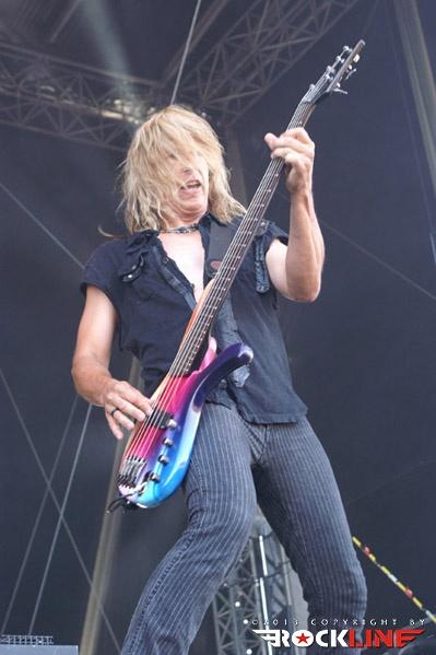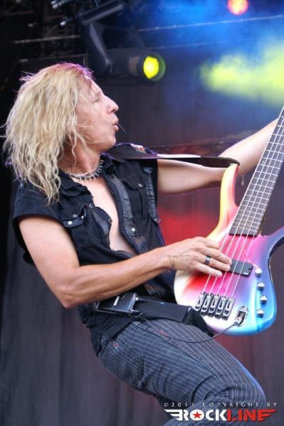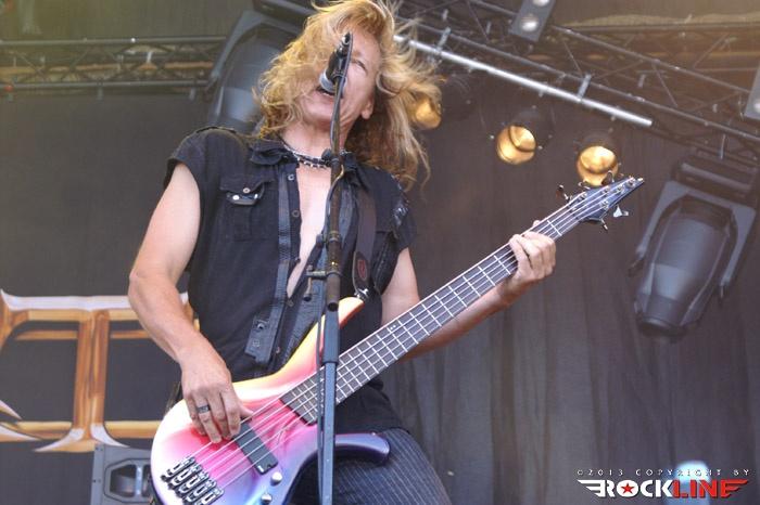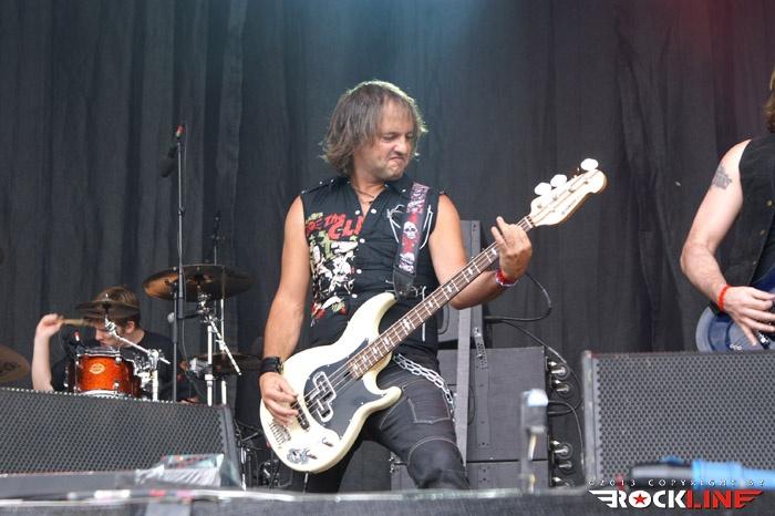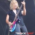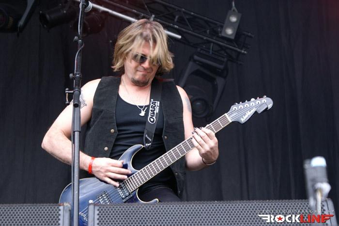 Kot drugi nosilec drugega dne festivala je nastopil AXEL RUDI PELL, eden najimenitnejših nemških heavy metal kitaristov, ki na domači grudi uživa kulten status. Potem ko smo fotografi vsako skupino najprej fotografirali izpod odra, so nam varnostniki vstop v fotografsko cono pred njegovim nastopom preprečili, z obrazložitvijo, da Pellov pirotehnični nastop onemogoča varno spremljanje koncerta iz odrove neposredne bližine. In res se je začelo udarno! Že pri uvodni skladbi Ghost in the Black so izbruhnili pirotehnični topovi in epsko udarnost Pellovega izraza nadgradili z vizualno predstavo, ki je zaradi večernega mraka zablestela v vsej svoji prvinskosti! Spremljanje koncerta Axla Rudija Pella je vsekakor nepozabna izkušnja, saj njegova skupina sestoji iz glasbenikov najvišjega pedigreja, utečena mašinerija tako brez težav briljira pri podajanju mogočne zasnove tehnično zahtevnih simfoničnih komadov. »Nemški Blackmore«, kakor nekateri imenujejo Pella, je hladen kot špricer v svoji maniri občasno jammovsko raztegoval komade, izostal ni niti Mike Terrana na bobnih, ki je sredi nastopa prikazal bogato paleto svojega znanja. V oziru dolgih inštrumentalnih pasaž, ki jih kar ni bilo videti konca inv katerih so uživali predvsem ljubitelji metalskih rapsodij, je v drugem planu ostal vokalist Johny Gioeli, ki pri Pellu kljub svojim prirojenim frontmanovskim in vokalnim preddispozicijam nekako nesrečno izostane v drugi bojni liniji. Enega vrhuncev večera je prinesla skladba The Masquerade Ball – tisočero dvignjenih rok v zraku in simultano prepevanje sta potrdili kitaristovo izredno priljubljenost, pa čeprav se je zdelo, kot da skupina na odru nekoliko varčuje z močmi. Publiki so ponudili ravno toliko, kot je zahtevala – izostala je podoživetost, pa čeprav je ravno ta vrlina glavna sestavina Pellovega glasbenega jaza.