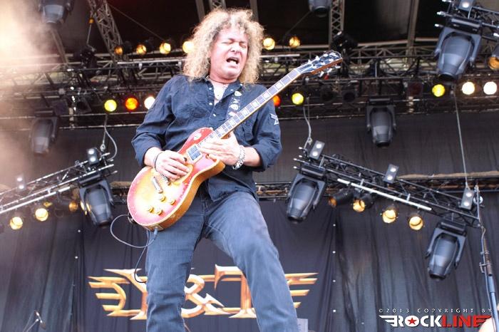 Ko je zgodnjepopoldansko sonce močneje stegnilo lovke nad festivalsko prizorišče, so na oder stopili PRAYING MANTIS, angleške heavy metal staroste, za katere malokdo ve, da sploh še migajo. Gre za sila zanimivo skupino, ki je izmed vseh predstavnikov tako imenovanega NWOBHM vala doživela najbolj samosvoj razvoj. Tekom let in konstantnih izdaj so stremeli k vse večji melodičnosti v heavy metalu, preživeli brodolom k obskurnosti in se v zadnjih letih pretvorili v sila kompaktno zasedbo, pravzaprav v najmočenjšo zasedbo v zdaj že več kot tridesetletni zgodovini benda. Ravno pogoste kadrovske menjave skozi leta so krive za zaton te nekdaj obetajoče skupine, v zadnjih letih pa sta brata Tino in Chris Troy v skupini naposled le uspela zgraditi močno medsebojno vez, ki se je kapitalizirala z izdajo albumov »Sanctuary« in »Metamorphosis«. Njihov nastop na Rock of Ages festivalu je tako minil v znamenju novejših komadov, ki reprezentirajo trenutni optimistični duh znotraj kolektiva, manjkali niso (naj)novejši komadi Children of the Earth, Panic in the Streets, Highway ter Captured City, seveda z vmesnimi pogledi nazaj v devetdeseta. Peterica na odru se je v nastop še kako vživela! Praying Mantis so se popolnoma posvetili perfekcionistični izvedbi, tako v vokalnem večglasju, kot tudi v samih inštrumentalnih dialogih. Včasih se je zazdelo, da so zaradi lastne vživetosti izgubili stik s publiko, te trenutke pa je znal z dvema vmesnima nagovoroma publike razbliniti simpatični kitarist Tino Troy. Prava maža za ušesa vsem oboževalcem zasedbe, ki se zavedamo, da je skupino blazno težko prestreči na odru. Kot mi je kasneje v kratkem pogovoru na »podpisovanju« dejal Tino Troy, ne zaradi njih samih, pač pa je nezainteresiranost trga tista, ki onemogča njihove pogostejše nastope. Žal so Praying Mantis postali pozabljeni NWOBHM dragulj, kljub vsej kvaliteti, ki jo premorejo.