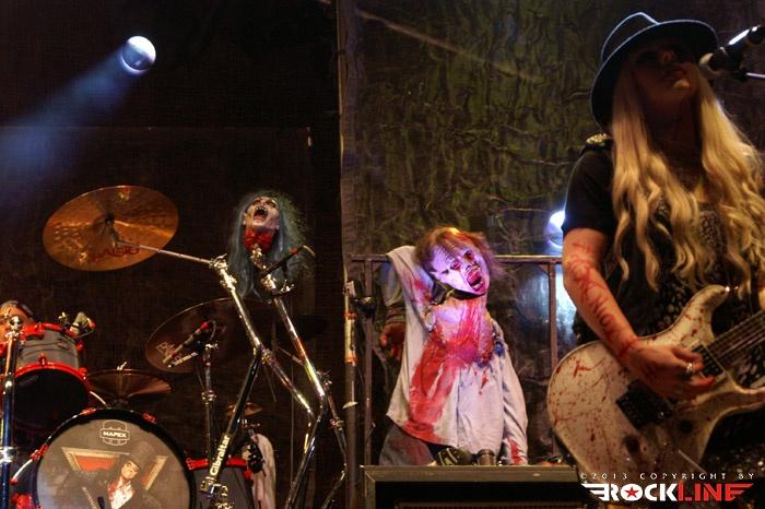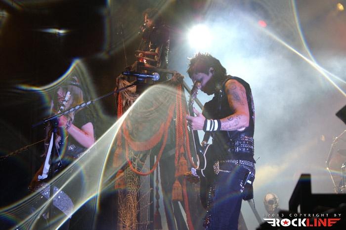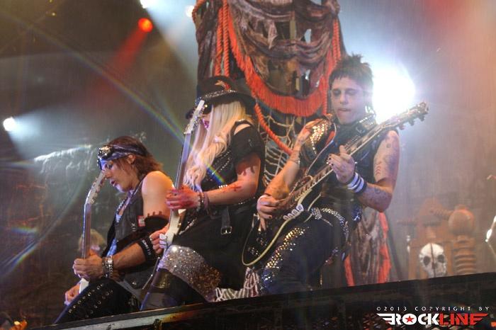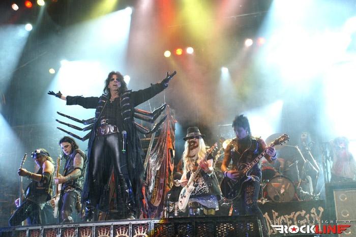 Če so vremenske razmere za časa nastopa Axla Rudija Pella še zdržale modernega razvajenega človeka vredne pogoje, se je v istem trenutku, ko so oder napadli ALICE COOPER in njegova številčna četica glasbenikov, ulilo kot iz škafa! V času pripravljanja odra za ogromnim zagrinjalom, ki je prekrival Cooperjevo koncertno kuliso v nastajanju, je festivalska množica pogledovala proti nebu in prosila za suh zaključek večera. Verjetno s(m)o bili pri moledovanju najglasnejši ravno fotografi pod odrom, ki smo bili sočasno z uvodnim komadom finalnega festivalskega nastopa Black Widow, ko se je utrgalo nebo, razpeti nekje med lovljenjem kar najboljšega kadra, in pobegom na suho, s čimer bi vsak svoji cenjeni opremi naredili lepo uslugo.