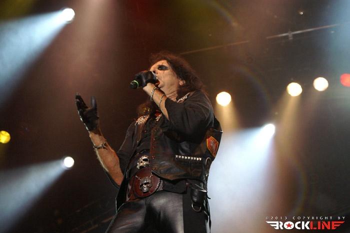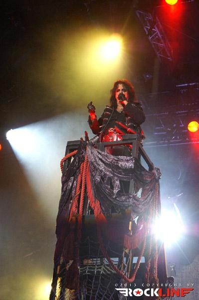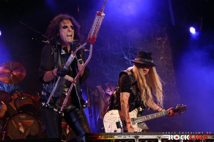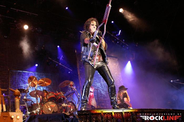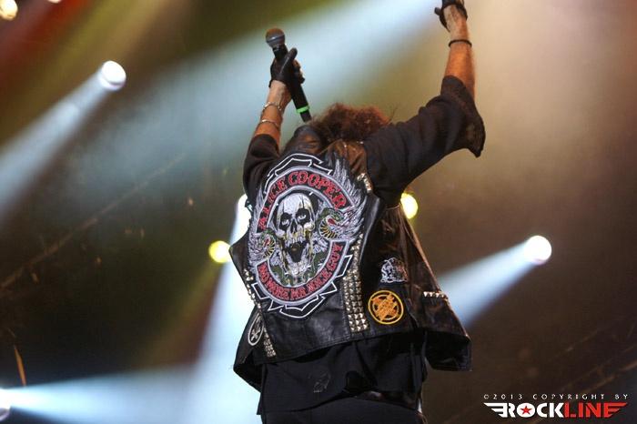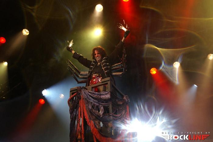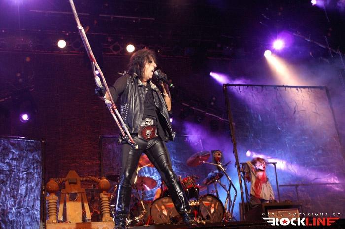 Ker je bila turneja posvečena spominu na njegovo zgodnjo kariero, so na račun prišli vsi ljubitelji njegovega klasičnega zvoka. Če je na solo koncertih v polno časovnico še umeščal posamezne komade njegovga zadnjega albuma »Welcome 2 My Nightmare«, mu natrpan, festivalskemu vrvežu prilagojen repertoar tega ni dovoljeval, kar je velika škoda, glede na to da je omenjeni album iz leta 2011 njegov najboljši po zelo, zelo dolgem času. Stari lisjak dobro ve, kako ugoditi publiki! Ogromen del njegovega nastopa temelji na stopnjevanju vzdušja z grajenjem večih zgodb v povezano celoto, med katero gledalcem pojenja sapa. Nič drugače ni bil niti tokrat, ko je z nekaterimi triki navdušil tudi mene, čeprav sm ga gledal čtrtič in sem bil prepričan, da me ne more več presenetiti. V začetni fazi koncerta je izgledalo, da se je varnostni službi navkljub na oder uspelo izmuzniti neki mladenki, ki je med igranjem nato nadlegovala basista Garricka, ko pa je sredi koncerta neimenovana mladenka podvig ponovila in je na zgroženje publike napadla samega Cooperja, jo je ta s srednjeveškim mečem kratkomalo zabodel! Dež, ki je kljub fenomenalnemu odrskemu šovu uspel zredčiti publiko, je sredi nastopa začel jenjati. Teatralna zabava se je preko slatkišev Halo of Flies (z razširjeno inštrumentalno predstavo), Muscle of Love in obveznim Poison prevesila v zaključni del, v katerem se je zgodil najtežjepričakovani trenutek večera. Rablji so med komadom Wicked Young Man Cooperja uspeli obvladati in ga privesti do giljotine, kjer je pred deset tisoč glavo množico dočakal svoj konec. Kot ponavadi so nato naslednje minute pripadle samopromociji ostalih glasbenikov, ki so si z izvedbo I Love the Dead dali duška, pred finalno reprizo, ko se je na oder vrnil njihov šef in so družno zaigrali še skladbi School's Out in Elected.