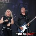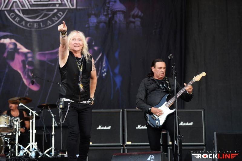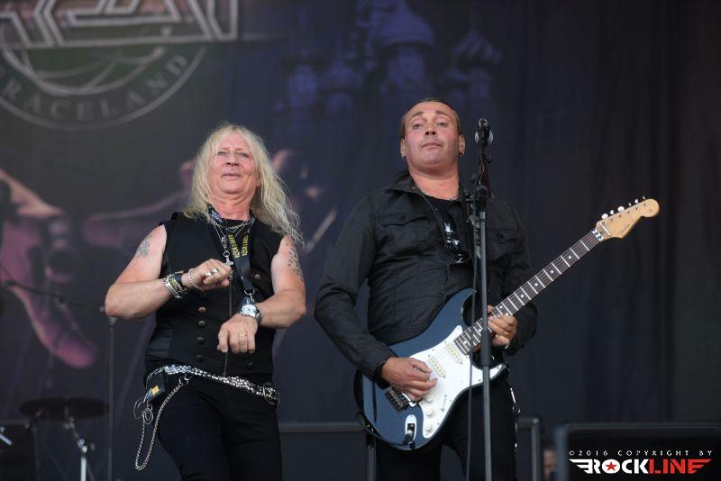 Na prizorišče je ekipa RockLine prispela ob pol drugi uri, ko so na odru stali veliki rock veterani Lucifer's Friend. Gre za nemško-britansko navezo, ki je bila ustanovljena leta 1970 in je glavnino albumov izdala skozi sedemdeseta. Diskografijo je za dlje časa sklenil album »Mean Machine« leta 1981, potem so Lucifer's Friend utonili v več letno dormanco ustvarjalne neaktivnosti. Prebujanje je napovedal album »The Awakening«, ki je vrsta kompilacije z novimi skladbami, izdan v lanskem letu. Pri Lucifer's Friend delujejo danes trije originalni člani in sicer slavni vokalist John Lawton, ki je v drugi polovici sedemdesetih sodeloval na treh ploščah tudi kot vokalist Uriah Heep, nadalje basist Dieter Horns, ki ga je Lawton med koncertom predstavil kot »... and Mr. Rock'n'roll himself…« ter kitarist Peter Hesslein. Postavo zapolnjujeta še klaviaturist Jogi Weismann, ki se je postavi priključil leta 1994 ter bobnar Stephan Eggert, ki je član zasedbe od leta 2014 dalje. Bend je pripravil v eni uri izvrstno predstavo. Po pričakovanju se je lotil novih skladb albuma »The Awakening«, vsekakor pa je zaigral tudi lepo bero klasik na čelu s Keep Goin' in Ride the Sky (obe »Lucifer's Friend«, 1970), nadalje Burning Ships (»Where Groupies Killed the Blues«, 1972), izvrstno Moonshine Rider (»Mind Exploding«, 1976) in Fire And Rain ter Hey Driver (album »Mean Machine«, 1981). Bend je vzpostavil že uvodoma izvrsten zvok, pravšnjega ravnovesja med Petrovo kitaro in Jogijevm čokatim zvokom Hammomd orgel. Klasični hard rock izvrstno obtežen z momenti psihadeličnosti, progresivnorockovskih nastavkov ter otipljivo bero muzikaličnosti, ki je kronana zlasti s spevnimi refreni. John Lawton ostaja izvrsten frontman, ki kipi od karizme tudi na zrela leta. Veliki gospod neslutenih pevskih kvalitet je hitro vzpostavil most s publiko, zlasti z izvrstnim obvladovanjem nemškega jezika. Izmed vseh »ne-nemških« vokalistov, ki so na festivalu med nastopi skušali simpatizirati z Nemščino, je Lawton zagotovo odnesel prvo mesto. Obenem je Lawton svojo komunikacijo doziral z zvrhano mero briljantnega humoriziranja, kar gre vkup s pravoverno angleško rock'n'roll kulturo. Bend je ob izdelanem in še vedno neverjetno ohranjenem žametastem Lawtonovem vokalu priredil enega najboljših nastopov na celotnem festivalu. Na trenutke se je sicer izkazalo, da dolgo, dolgo ni igral skupaj, saj, ko je Peter preprijel akustično kitaro v roke v skladbi Burning Ships, le ta večkrat v ubiranju akordov ni izzvenela povsem čisto. A to so že malenkosti ob zvočni pristnosti, ki nas je v hipu odstrelila v zlata sedemdeseta.