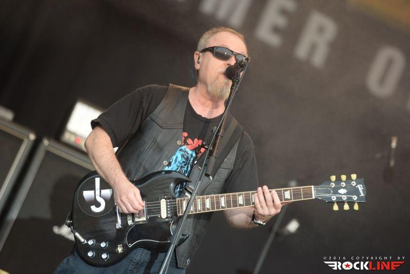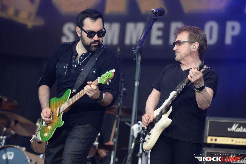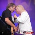 Posebno vrsto atrakcije ne le drugega dne, pač pa kar celotne izdaje festivala, pa so dostavili s svojim prihodom znameniti ameriški rockerji Blue Öyster Cult. Le ti nastopajo po letu 2003, ko so v družbi Uriah Heep opravili, vsled promocije takrat aktualnega albuma »The Curse of Hidden Mirror«, zadnjo omembe vredno turnejo v Evropi, po stari evropski celini danes skorajda izjemoma. Le tu in tam na kakšnem izmed poletnih evropskih festivalov. Vendar so v letošnjem poletju zložili kar nekaj pojavljanj na evropskih festivalskih odrih, kar je hvale vredno. Njihov nastop na festivalu Rock of Ages je veljal za absolutno popestritev progama. Blue Öyster Cult zastopata v današnji postavi le še dva originalna člana. K sreči sta to tudi tista člana, ki opravljata vse vokalne funkcije. To sta hkrati tudi kitarista! Eric Bloom in seveda Donald Roeser, z akronimom »Buck Dharma«. Preostanek današnjega Blue Öyter Cult kvinteta zastopajo še malopoznani bobnar Jules Radino, prekaljeni basist Kasim Sulton (znan po sodelovanju v zasedbi Utopia) ter izvrstni multinstrumentalist Richie Castellano, ki je, glede na staž, tudi znatno mlajši glasbenik. V pričakovanju klasik torej! In tako je tudi bilo. Začenši z uvodno »Agents of Fortune« klasiko This Ain't the Summer of Love, ki jo je nasledila Golden Age of Leather. V zvezi s slednjo se je uvodni verz z »Raise your can of beer on high« več kot izvrstno pridodal občemu festivalskemu razpoloženju! Bloom in Dharma ostajata vokala skupine, ki zadržujeta lesket posebne karizme glasbene edinstvenosti te skupine. Velika vokala. Z njima vred zadržujejo tudi Blue Öyster Cult vso izvedbeno kredibilnost na zrela leta delovanja. Bloom ostaja strupeno jezičen, ko jemlje verze. Mrkega, ledenega izraza. Vseskozi s črnimi očali na očeh. Buck Dharma se za razliko od kolege Blooma vseskozi nasmiha in vnaša na koncertno prizorišče veliko več dostopnosti in topline. Posebno odkritje je Richie Castellano. Ta se je od sramežljivega uvodnega »skrivanja« za klaviaturami (This Ain't the Summer of Love) v zadnji tretjini koncerta dobesedno razstrelil na solo točki znotraj skladbe Then Came The Last Days of May. Ta, edina skladba vzeta iz studijskega prvenca skupine, je vsebovala posebej »razpotegnjen« srednji instrumentalni del, kjer je najprej briljiral s svojimi mojstrovinami Castellano, tega pa je v nadaljevanju seveda nasledil Buck Dharma. Slednji se je predhodno že solistično dodobra ogreval v izvedbi znamenitega instrumentala Buck's Boogie. No izvedba tega solističnega duela med Castellanom in Buckom je sama po sebi pomenila enega koncertnih vrhuncev nastopa skupine. Blue Öyster Cult, znameniti agentje v črnem, konspiratorji in če ne kar zlobni strici rock'n'rolla, pa so pri vsem tem ostali blagi dolžniki. Na razpolago so namreč imeli uro in dvajset minut, zaigrali pa so manj kot uro dolg repertoar. Bend, ki je z izjemo ponarodele Burning For You in »Cultosaurus Erectus« bombončka Lips in the Hills, ostal glede osemdesetih velik dolžnik, je v repertoarju urezal še skladbe ODD'd on Life Itself, Me262, Harvest Moon (nepotrebna točka iz albuma »Heaven Forbid«, 1998), koncert pa sklenil s klasiko Godzilla ter obče pričakovano Don't Fear the Reaper. Ob vsej profesionalnosti, ki so jo servirali veliki gospodje rock'n'rolla, se človek ni mogel znebiti občutka, da bi lahko skupina dostavila daljši koncert in z njim vred vsaj še tri, če ne štiri skladbe.