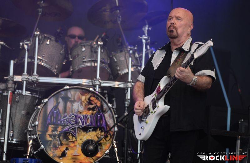 K sreči je ta predstava hitro utonila v pozabo, saj je oder nasledil dodobra naoljen artrockovski stroj iz Anglije! To so znameniti Magnum. Ti imajo za seboj znova kopico koncertov, saj so na novi headlinerski turneji nedolgo tega predstavljali aktualni studijski album »Sacred Blood `Divine` Lies« (2016). Zato veljajo za vrhunsko uigrani tandem, ki na odru preprosto ne zna in ne zmore zatajiti. Ker so Bobu Catleyu pričele z leti pešati vokalne moči, so se tudi Magnum v zadnjih letih uglasili niže. Tako je Catley, ki je v zadnjih letih, glede na njegovo »izsušenost«, znova pridobil nekaj prepotrebnih kilogramčkov, povsem dostojno zvozil predstavo. No le proti koncu, ko se je lotil skladbe Vigilante, se je čutilo nekaj njegove vokalne utrujenosti. Sicer pa koncert poln kipeče dinamike in izvrstnega vzdušja. Vsekakor sta največ kinetike premogla Catley, za to priložnost odet v beli jeans, ki je tudi korenito izkoriščal cat walk pozicijo ter basist Al Barrow. Tony Clarkin se med koncertom še vedno drži kot »hladni kip«. Nepremično. A s kitarsko igro in zvokom, kot si ga lahko le želiš. Bend je že uvodoma presenetil s »Chase the Dragon« klasiko Soldier of the Line in ura rajanja z Magnum se je pričela hipoma v siju visoko atmosferičnega izplena. Po pričakovanju. Izvrsten zvok, izvrstna predstava. Nemara je, glede na omejeno minutažo, zmotilo le to, da je bend zaigral kar štiri nove skladbe in je bila tako publika prikrajšana za kakšno klasiko več. Tako smo prejeli iz enega najbolj cenjenih albumov skupine »On A Storyteller's Night« le naslovno skladbo in All England's Eyes, iz albuma »Vigilante« le prej omenjeno naslovno skladbo, v dodatku pa prelepo« Chase the Dragon« klasiko The Spirit in pričakovano Kingdom of Madness (»Kingdom Of Madness«), s katero je bend sklenil koncert. Album »Sacred Blood `Divine`Lies« je bil zastopan s skladbami: Your Dreams Wont Die, Princess in Rags (The Cult), naslovno skladbo in singlom Crazy Old Mothers. Vsekakor je šlo pri tem pogrešati kakšno točko tudi iz izvrstnega albuma »Wings of Heaven«.