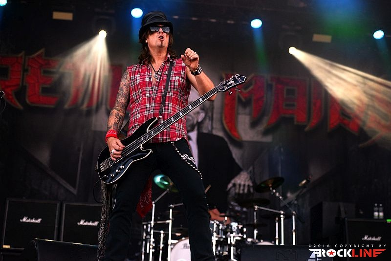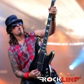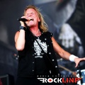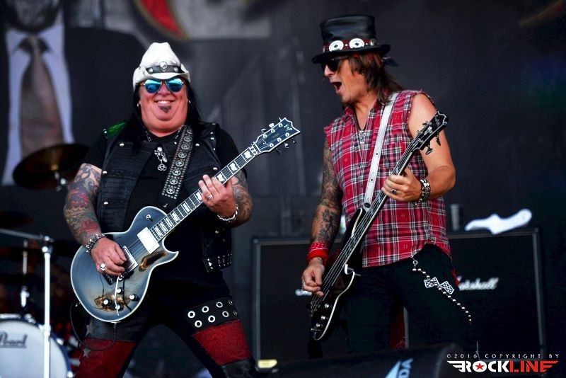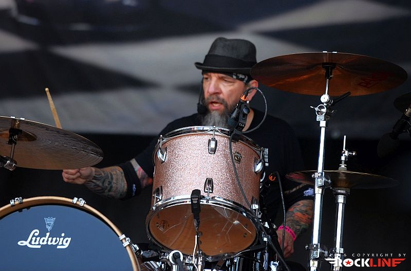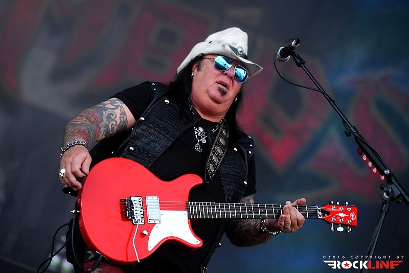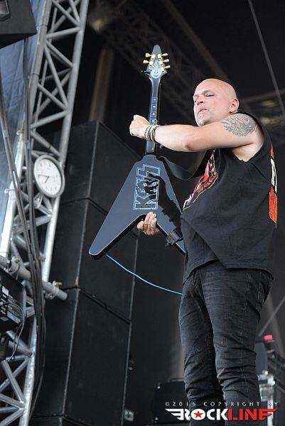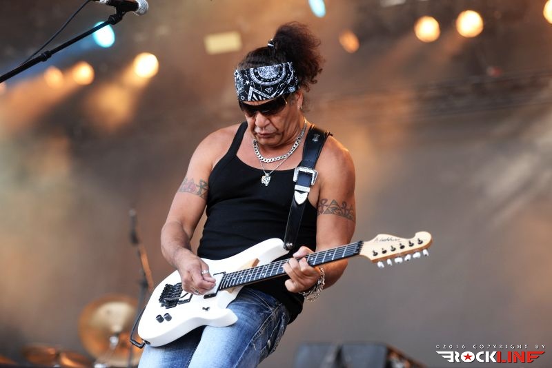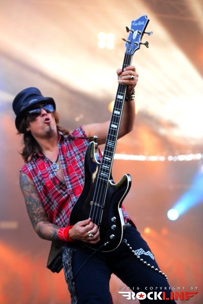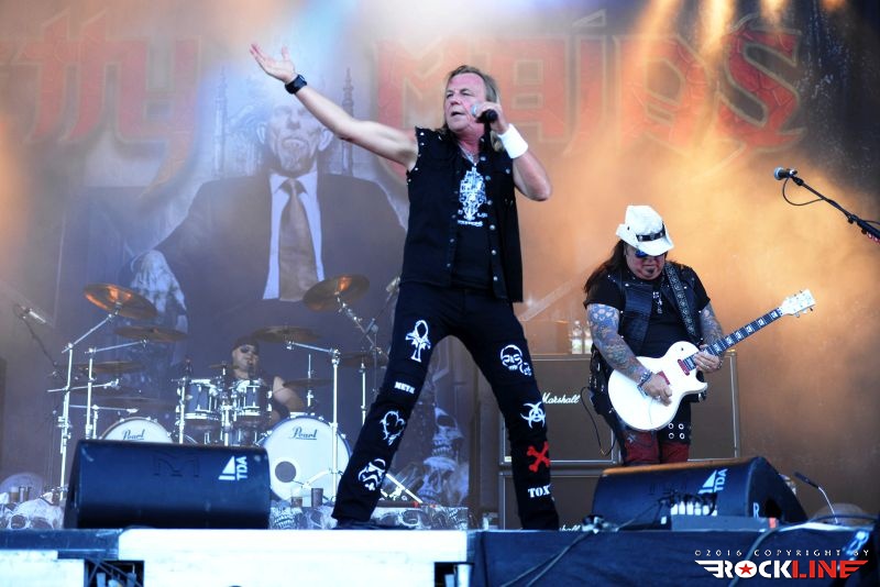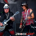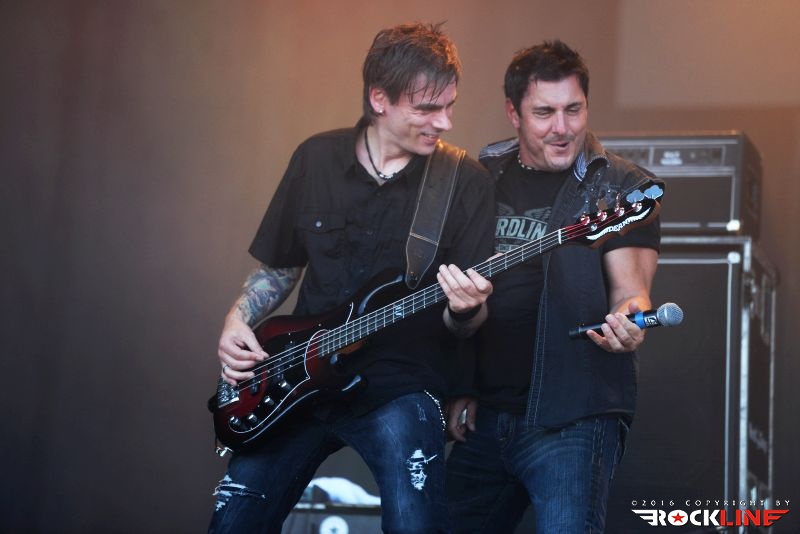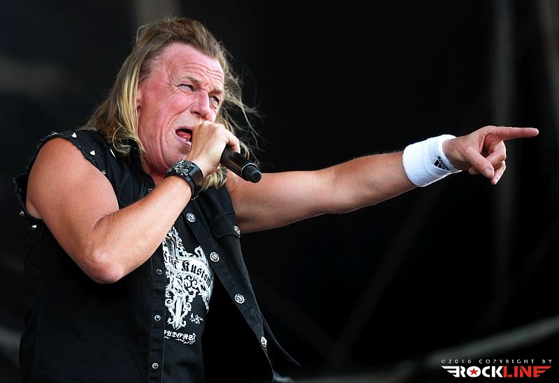 Peti izvajalec drugega dne festivala je stopil na oder pet minut pred četrto popoldan. To so bili Hardline, ki jih zastopa izmed originalnih članov v novih časih le še pevec Johnny Gioeli. Zahvaljujoč njegovemu zagonu in entuzijazmu so Hardline sploh znova aktivni in so tako v obdobju med letoma 2009 in 2016 nanizali tri nove studijske albume med katerimi sta aktualni »Human Nature« in predhodnik »Danger Zone« več kot solidna, če ne kar zelo dobra. Bend je v novih časih zelo spremenjen kar se postave tiče. Na kitari se nahaja Portoričan Josh Ramos, ki je leta 2002 že ponudil Gioeliju usluge za Hardline album »II«. Za klaviature skrbi vsestranski Alessandro Del Vecchio, za bobni sedi aktualni Primal Fear bobnar Francesco Jovino, na bas kitari pa bi morala zaigrati Anna Portaluppi, ki pa jo je ob tej priložnosti zamenjal drug basist, katerega imena pa mi nikakor ni uspelo prestreči. Skratka. Bend je ob, izvedbi točk aktualnega abuma »Human Nature«, dostavil v veliki glavnini repertoarja izvedbo točk kultnega prvenca »Double Eclipse« (1992). Neverjetno, a skoraj ves omenjeni album so Hardline obdelali v slabi uri koncertnega nastopa. Zvrstile so se Dr. Love, Everything, Hot Cherie, I'll Be There, In the Hands of Time, Life's a Bitch, Rhythm from a Red Car, Takin' Me Down. Mokre sanje za ljubitelje tega albuma in skupine. Seveda ni šlo drugega pričakovati, kot novo izvrstno predstavo Johnnyja Gioelija, ki je bil tako kot lansko leto, ko je tu nastopal z Axlom Rudi Pellom, znova skrajno našpičen in je skakljal od enega do drugega člana skupine, kot krogla v »flipperju«. Ali je mož pred nastopom kaj požrl in kaj "počvakal" (ali ne), niti ni jasno, vendar pa ga je neverjetno trgalo in premetavalo skozi koncert. Pel je briljantno, kar je tudi bistvo. Le ena stvar je motila. Johnny ne obvladuje verzov. .No ko se je nekajkrat skorajda teatralno pričel obešati na stojalo mikrofona, z nogo an enem od monitorjev, je to postajalo na trenutke kar moteče, nakar je lahko vsak obiskovalec z malo več pozornosti brez večjih težav ugotovil, da pravzaprav škili v liste papirja nalepljene na tleh, ob stojalu mikrofona. Denarja za teleprompter, tako kot Judas Priest in Black Sabbath, Hardline pač nimajo. Dr. Love je bila že ena takšnih, »v verzih pozabljenih« točk. Sicer pa se tudi nad nastopom Hardline ni šlo pridušati prav v ničemer. Gre za vrhunske glasbenike, ki obkrožajo Johnnyja in ta koncert so pač oddelali z veliko odliko. Bend je v preostanku materiala preigraval tudi novi album in dostavil otvoritev koncerta z Where Will We Go From Here, v nadaljevanju pa izvedel še naslovno skladbo novega albuma ter Take You Home.