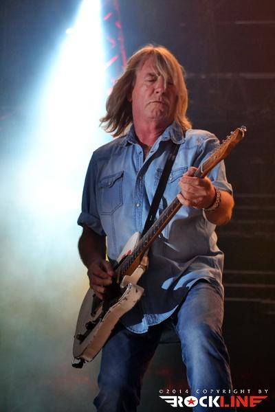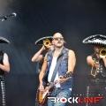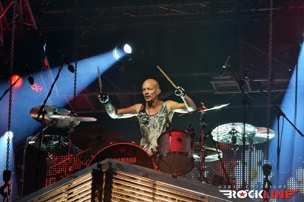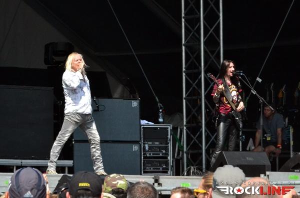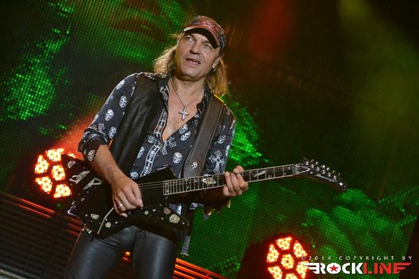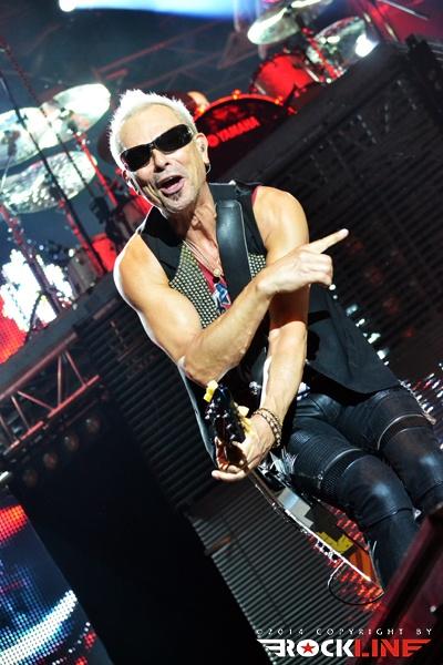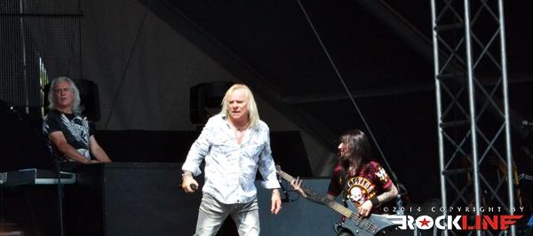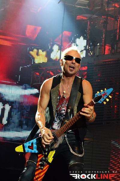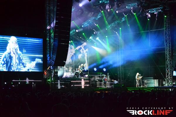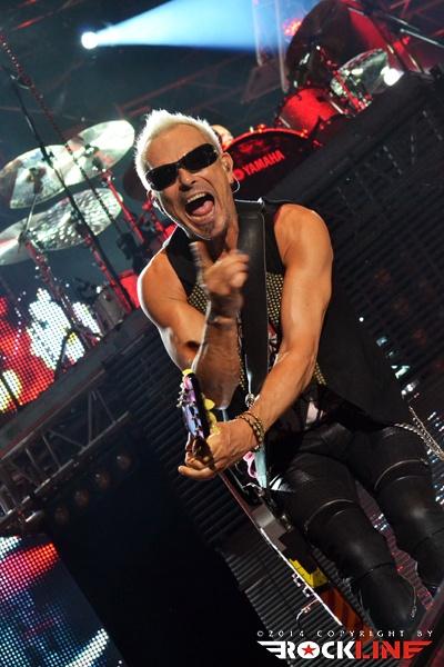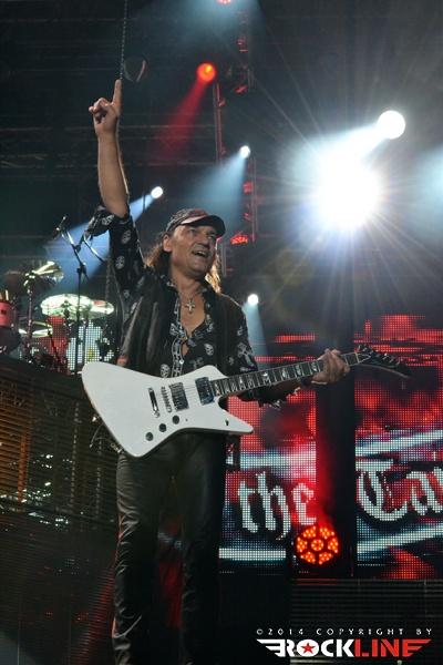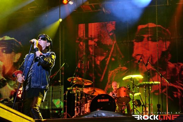 Ironija je, da se je prva Rossijeva skupina, ki je postala osnova za Status Quo, imenovala The Scorpions, saj so ravno Scorpions (oni nemški) bili glavne zvezde večera. Obe skupini namreč segata v sredo šestdesetih let prejšnjega stoletja in bosta v kratkem obeležili petdesetletnici delovanja. Glamurozen oder z video projekcijami, hidravlično dvigajočimi bobni ter catwalkom je obetal ogromno, a kaj ko je pri glasbi je vse drugo bolj pomembno. In ravno tu se je zalomilo. Nastop je pustil precej grenak priokus. Že ob uvodnem Sting in the Tail se je zdelo, kot da Klaus ni čisto pri sebi. Bližnji posnetki na videozidu so kazali podobo priprtih oči in 'vseeno mi je' odnosa, kot da bi pred koncertom skadil joint ali dva. Začetek ni kaj dosti obetal. Vokalno se je opotekal in posledično tudi ni dobival skoraj nikakršnega odziva publike, kar je vidno tudi na spodnjem videu. Vsaj v začetku je poleg poziranja Rudolfa Schenkerja s svojimi kičastimi kitarami ter nadomestnega bobnarja Johana Franzona na dvigajoči platformi, omembe vreden le drugi kitarist Matthias Jabbs, ki je s svojimi odlično odigranimi solažami držal zvočno sliko vsaj malo nad povprečjem. Klausovo eratično obnašanje na odru se je še nadaljevalo, ko je na nejevoljo roadijev, metal tamburin proti prvim vrstam ter v bobne. Stvar se je nekoliko pričela izboljševati z izvedbo The Best is Yet To Come, ko je tudi Klause prijel za kitaro, končno pa se je tudi občinstvu odpeljalo z izvedbo romantične klasike Send Me An Angel. Skupina se je glasbeno sprehodila skozi svoj bogat opus del, in kaj prehitro se je zgodil konec rednega dela. Nobeno presenečenje ni bilo, da sta se v prvem podaljšku znašla tako Rock Me Like a Hurricane kot tudi Wind of Change, publika pa je skupino uspela priklicati še enkrat na oder. Kakor je porazno kazalo na začetku, pa se je koncert k sreči razvil in dobro zaključil res odličen koncertni rockovski dan. Nas pa je čakala kratka noč počitka in priprave na metalski dan na See rocku.