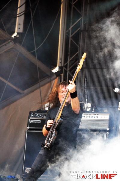 Precej hud tempo nam novinarjem ni dopuščal kaj dosti počitka in hlajenja v sencah borovcev na obali Schwarzlskega jezera. Naslednji so bili namreč že na vrsti Sabaton. Priznati moram, da te švedske »vojaške metalce« nisem več vajen gledati ob tako zgodnjih urah in s tako kratko setlisto (prihodnje leto bodo celo headlinerji v Wacknu!). Vsi, ki so videli njihov zaključni nastop velikega odra na Metaldays pred tednom dni, so imeli od nastopa velika pričakovanja. A sta žal že zamuda in problemi z ozvočenjem dali slutiti, da verjetno ta nastop le ne bo na običajnem nivoju. Sedaj že klasični otvoritveni komad Ghost Division, je potrdil bojazen o zvoku – vokala se skoraj ni slišalo, kitare in bas so se zlili skupaj nekje v območju srednjih tonov, bobni pa so občasno sekali preko tega. Zvočna slika se je tekom samega nastopa nekoliko popravila, sam nastop pa je reševala izjemna odrska energija in seveda obvezne šale na račun Joakimovega penisa in klicanje še enega piva »Noch ein bier!«.
