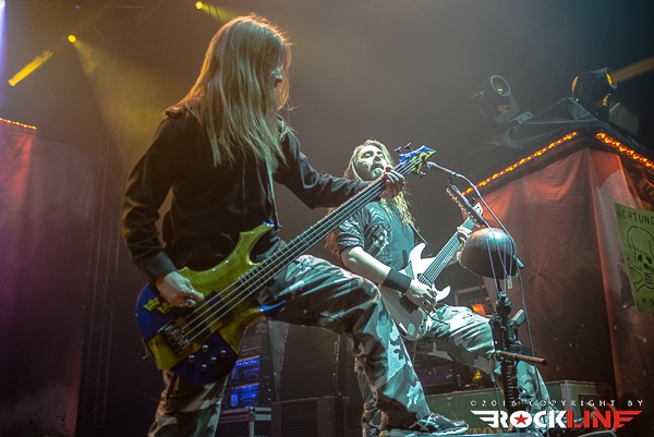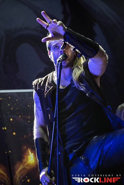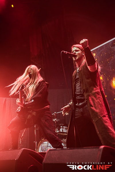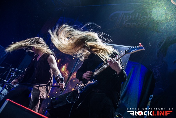 Večer je potekal strogo po obljavljeni časovnici, tako da so točno ob devetnajsti uri oder zasedli švedski power metalci Twilight Force. Fantje prihajajo, tako kot Sabaton, iz kraja Falun, tako da ni presenečenje, da so jih starejši sokrajani vzeli s seboj na turnejo, Joakim pa je tudi sodeloval na njihovem zadnjem albumu kot gostujoči pevec. Skupina se je formirala pred petimi leti in ima za seboj dva albuma. Če iščete najbolj klišejski power metal band, potem ne iščite dalje. Člani zasedbe izgledajo kot kakšna odprava iz Tolkienovih zgodb (vitezi, vilinci, magi,...), odrsko ozadje krasijo gradovi in zmaji, glasba pa je mešanica vplivov skupin kot so Hammerfall, Rhapsody in Dragonforce. Celo njihov TF logo je na moč podoben HF logotipu Hammerfall. Sam nastop pa žal ni bil prepričljiv. Pred večinoma prazno dvorano, ki se je sicer proti koncu njihovega polurnega nastop počasi polnila, jim je veliko krivico storil slab zvok, ki je bil mogoče deloma posledica praznega prostora. Instrumenti so bili nerazločni, basa pa se skorajda ni slišalo. Twilight Force so z maloštevilno publiko sicer uspeli vpostaviti interaktiven odnos, nastop je popestril tudi kontrast med čistimi vokalnimi linijami pevca Chrileona ter klaviaturista Blackwalda, ki je vskočil z bolj robatim vokalom, sodeloval pa je tudi kot povezovalec zgodbe. Žal je proti koncu nastopa, pevčev glas začel izgubljati natančnost, kar je pustilo še dodaten grenak priokus nastopu. Več sreče prihodnjič!