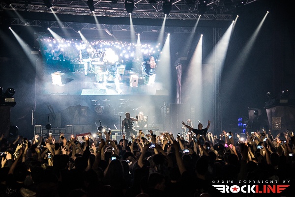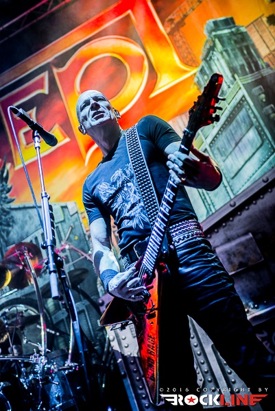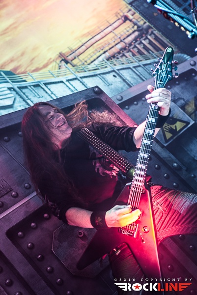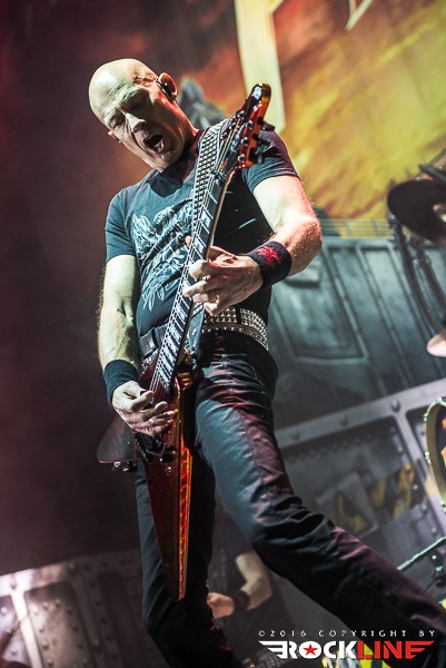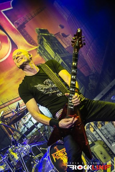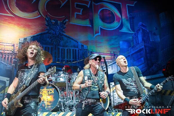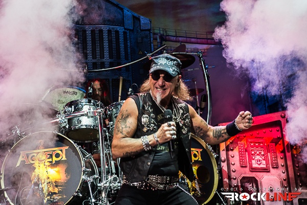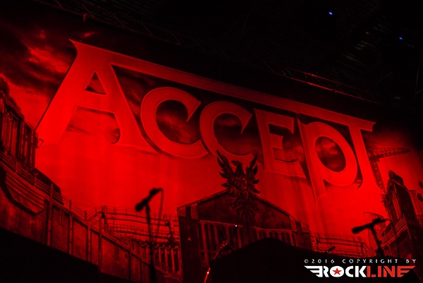 Po medlem nastopu pa ni bilo dvoma, da nas čaka ura prave heavy metal lekcije, katere bi se lahko učili tako prvi kot zadnji nastopajoči. Accept namreč z nekaj prekinitvami delujejo že dobrih štirideset let, zametki skupine pa segajo celo v šestdeseta leta prejšnjega stoletja. Pravi preporod skupine pa se je zgodil leta 2009, ko sta kitarist Wolf Hoffmann in basist Peter Baltes, oba člana zasedbe že vse od leta 1976, spoznala pevca Marka Tornilla in z njim leta 2010 izdala album 'Blood of the Nations', ki je porušil vse njihove dotedanje rekorde. Sledeči albumi so bili prav tako uspešni, novi pa se pričakuje letos poleti. Ura nastopa je kar premalo za takšne legende, a so kleni Nemci izkoristili prav vsako sekundo nastopa. Idealna mešanica hitov iz osemdesetih let z uspešnicami zadnjih nekaj let, je napolnjeno dvorano držala na nogah od začetka do konca. Izkušeni in prekaljeni glasbeniki so nastop, navkljub letom, izpeljali na visokem nivoju in energično kot le kaj. Tornillo se je med vsemi kitarskimi solažami, ki jih ni bilo malo, zabaval z igranjem »zračne kitare«, medtem ko je Wolf z neverjetnimi grimasami na obrazu, poblaznelo krivil strune. Kot je zanje značilno, ojačevalci na najvišji stopnji glasnosti, so bili tokrat za to dvorano celo rahlo premočni, saj je prihajalo do rahlega odmeva, basi so se izgubili nekje v množici, kitare pa so na trenutke kar zažvižgale skozi boleča ušesa. Ampak heavy metal ni glasba, da bi jo poslušali potiho, mar ne?