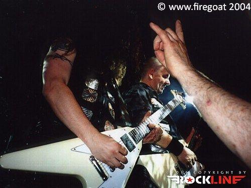 Gremo nazaj. Narod je bil v ekstazi, hipnotizirano je prepevala dvorana "oooh-oooh-e" vzete iz Balls To The Wall, ki je še kar odzvanjala v ušesih. Tudi potem, ko je Kaufman prišel nazaj na oder in začel igrati intro k Holy ("Holy", 1999), se občinstvo ni kaj prida zmenilo in se v svojem prepevanju ni pustilo motiti. No, ko pa se je prikazal na odru še Udo z ostalimi, se je tudi narod prebudil iz hipnotičnega stanja. Udo je bil za to priložnost odet v župnika s sončnimi očali. Ejga, zakon! Sprva sem pomislil, da je na odru Nosferatu, ki ga igra Klaus Kinski. Sploh je "Holy" moj najljubši U.D.O. album in padel sem v tak delirij, da sem celo skušal v verzu "raise your hands" oponašati Udov vokal. V trenutku sem ostal brez glasu. Vročina je znova naraščala, U.D.O. so prestavili "v višjo" z Accept klasikama I'm A Rebel ("I'm A Rebel", 1980) in najbolj hrupno, najbolj khm, da ne rečem noro, skratka pesem samih superlativov, lekcijo prave metalske agresije, hrupa in nezadržnega besa v najhitrejši pesmi set liste Fast As A Shark ("Restless And Wild", 1982). U.D.O. so se poslovili drugič, narod pa je vztrajal in dobil še drugi bis. Skupina je ostala pri omenjeni Accept plošči in pričela drugi dodatek s srednje hitro obskurno a epsko Princess Of The Dawn, ki so jo U.D.O. izvedli v verziji, katera se nahaja na njihovi živi plošči "Nailed To Metal" (2003). Z eno besedo vrhunsko! Presenečenje za konec je bila nedvomno vključitev pesmi Burning, ki je U.D.O. na marčevskih in aprilskih koncertih svoje Thunderball World Tour niso vključevali v set listo. Udo povpraša prisotne: "Do you want us to play another one?" Odgovor je bil huronski "Yeah!!!", nakar Udo zamahne z roke, češ: "Ste pa nemogoči, kaj še nimate dovolj?" in nadaljuje: "All right Ljubljana! Are you ready to rock? Are you ready to roll?" in tako je odjeknila v noč še ena Accept klasika, ki je zaokrožila ta fenomenalni nepozabni dogodek oživljanja Accept magije, ki je trajal dobri dve uri. Ljudem se je popolnoma zmešalo. Da slovenska metalska publika ne pozna meja, priča nekaj krepkih prask, ki sem jih med koncertom dobil za spomin. Parkrat bi mi skoraj sploščilo moda, ker so se manijaki od zadaj zaletavali v prednjo vrsto. Po vratu sem bil ves porezan, ker se je nek norec po koncertu stegoval prek mene v upanju, da bo dobil kakšno trzalico, da ne govorim o stolčenem komolcu. Preživeti metal koncert v Sloveniji postaja zame očitno iz leta v leto vse težja preizkušnja. Prepotuješ skoraj pol sveta in se izpostavljaš razno raznim divjim situacijam, vse venomer teče brez težav, potem pa se ti zgodi "pizdarija" kot nalašč na koncertu v Sloveniji. Med koncertom Grave Digger mi je npr. nek kreten na parkirišču pred dvorano odtrgal prednjo registrsko tablico iz avta. No to pot, pa sem odšel domov s celim kupom odrgnin.