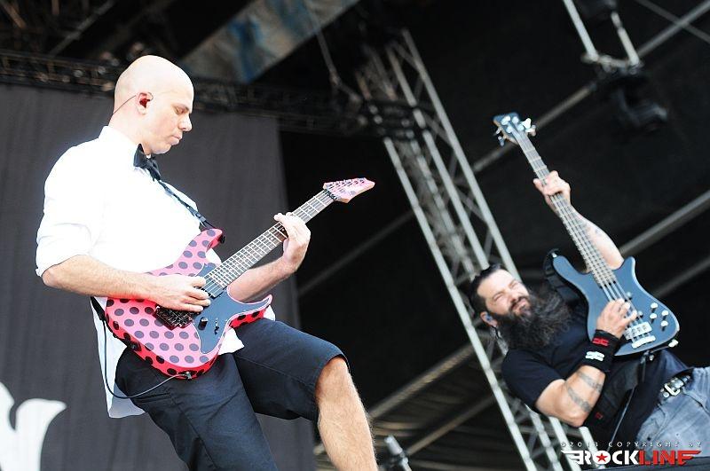 Christians to the Lions je ena izmed klasik zgoraj omenjenih Behemoth, še raje pa bi videl, da bi Poljaki levčkom servirali ameriške alternativce Stone Sour, ki so si odrezali naslednji večji kos časovnice festivala. Stone Sour so ena izmed najbolj popularnih ameriških »alternativnih« zasedb, kar ni nič čudnega, saj v bendu delujeta člana ultra popularnih in prodajanih Slipknot, vokalist Corey Taylor in kitarist Jim Root, poleg tega pa je bend bližje kot metalu blizu vodam alternativnega rocka. V dobri uri so Stone Sour že precej številčni publiki predstavili material z vseh studijskih plošč pri čemer sta prednjačili verjetno najuspešnejši Come What(ever) May in prvi del konceptualne dvojne plošče House of Gold & Bones. Tako smo bili deležni močno »downtunanih« kitar z modernimi rifi in pretirano samozavestnim in (meni osebno) tečnim frontmenom Coreyem Taylorjem. Na mehke, milo zveneče melodije so palile predvsem nežne, avstrijske dušice, ki so se topile (ostali pa fasali sladkorno) predvsem ob komadih Say You'll Haunt Me, Bother in Through Glass. Pričakovati je bilo, da bo avstrijska publika, ki ima močno zaledje v metalcoru in podobnih modernejših žanrih Stone Sour glasno spodbujala in nekako tako je tudi bilo, a sem sam trdno prepričan, da bi Stone Sour mnogo bolj sodili na kakšen festival tipa Nova Rock kot pa neposredno pred Iron Maiden. Stone Sour so se proti koncu svojega seta dokaj solidno poklonili očakom Black Sabbath s priredbo klasike Children of the Grave (čeprav je v njihovi izvedbi, kljub suverenim Coreyevim vokalom najraje ne bi slišal), svoj koncert pa (logično) zaključili z najbolj »slipknotovsko« zvenečima komadoma Get Inside in 30/30-150. Ker so Stone Sour ime prevzeli po koktajlu (en del viski, en del pomarančni sok, brizg citronke), naj zaključim s tem, da bi si s Stone Sour mnogo raje omočil grlo kot mučil ušesa.
