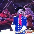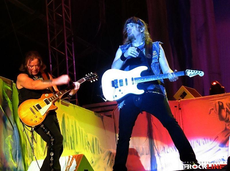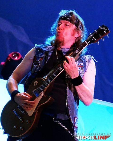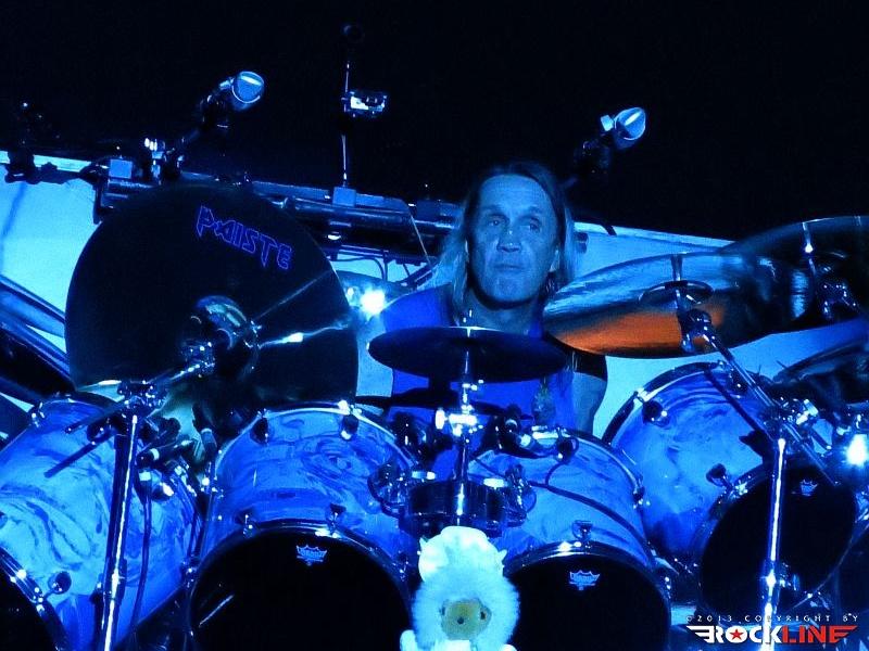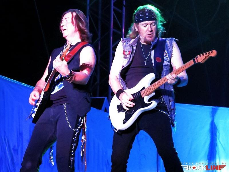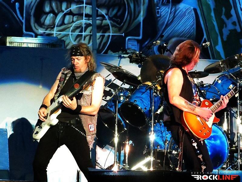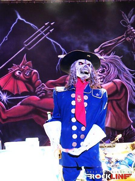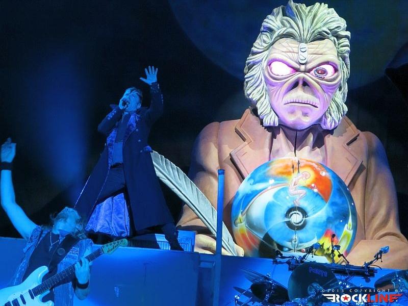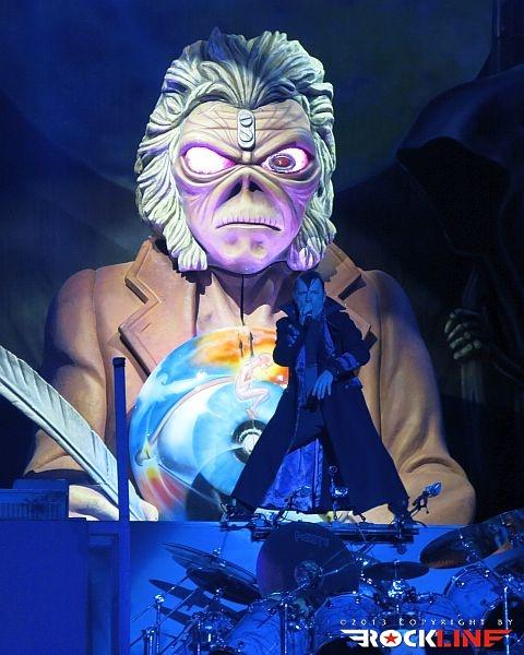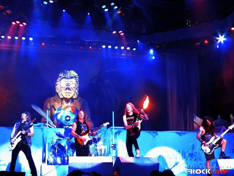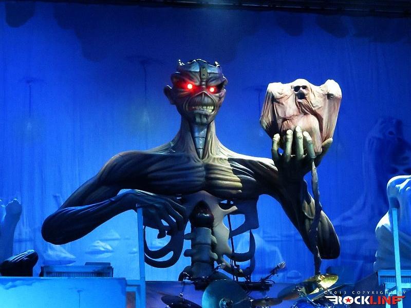 Točno ob devetih pa se je končno začelo to po kar smo prišli! Iz zvočnikov je kot že tolikokrat poprej zabučala UFO klasika Doctor Doctor, nato pa so ob ugasnjenih lučeh in modrikasto osvetljenem odru iz zvočnikov zadoneli prvi apokaliptični toni večne klasike Moonchild. Še prej pa se je zdelo kot, da so si fantje privoščili neslano, angleško šalo na račun publike, ki je cel dan stala pod žgočim soncem. Na ekranih so (skladno s tematiko albuma Seventh Son of a Seventh Son seveda) se namreč zvrstili posnetki prostranih ledenikov in kar milo se ti je storilo ob pogledu na mrzlo vodo. Iron Maiden na tokratni turneji obeležujejo kultni koncertni posnetek Maiden England iz leta 1988 , ki temelji na še bolj legendarni turneji 7th Tour of a 7th Tour, jasno posvečeni večni heavy metal klasiki Seventh Son of a Seventh Son. Setlista je bila tako večinoma znana že vnaprej, saj so več kot tri četrtine le-te predstavljali komadi s prej omenjenega koncerta, a to ni prav v ničemer pokvarilo neizmernega užitka ob ponovnem srečanju z očaki heavy metala. Prej obratno! Nekoliko mlajši smo se lahko ob klasični turneji prej slinili le na YouTube, tokrat pa ji prisostvovali v skoraj nespremenjeni obliki. Povratek v zgodovino očitno tudi na skupino deluje pomlajujoče, Iron Maiden so od prve do zadnje note zveneli kot dvajsetletni nabriti mulci. Večni mladostniki so oder znova zavzeli tako kot ga znajo zavzeti le oni; veliki šef Steve Harris s poveljujočim pogledom in dvignjeno nogo na monitorju, vedno nasmejani stric Murray, živa kitarska vrtavka Janick »ninja« Gers, prefinjeni solist Adrian Smith, fantastični Nicko McBrain za svojo bobnarsko trdnjavo in nepozabni Bruce Dickinson, ki ga je bil vnovič poln vsak centimeter odra. Dickinson je zvenel iz minute v minuto bolje in prvič je zares eksplodiral v nepozabnem (prvem) vrhuncu koncerta z epskim The Prisoner. »I am not a number, I am a free man« je v začetku zadonel nezgrešljivi glas legendarnega Patricka McGoohana, glavnega igralca kultne serije The Prisoner, ki so nam jo Iron Maiden spektakularno razprostrli z istoimenskim komadom in skorajda orosili oči ob skladbi, za katero je bilo težko verjeti, da jo bo še kdaj mogoče slišati v živo. Maidni publiki niso dali dihati in po klasiki 2 Minutes to Midnight servirali protivojno epopejo Afraid to Shoot Strangers s precej spregledane plošče Fear of the Dark. Device kljub letom in letom igranja in očitkom o rutinskem koncertiranju še vedno znajo presenetiti! Dickinson si kot vedno za The Trooper nadene uniformo in maše z »Union Jackom« in znova se oči hipnotično ustavijo na največjem heavy metal frontmenu vseh časov. Dickinsonova odrska intenzivnost je še vedno sapo jemajoča, saj je bolj aktivnega frontmena težko najti. Skakanje, animiranje in pestra komunikacija so Bruceve odlike, ki pa še zbledijo ob njegovi vokalni predstavi. Resda v »air raid« višine ne posega več tako kot včasih, a v njegovem glasu se skrivajo izkušnje, zrelost in sposobnost neverjetne interpretacije. Dickinson je bil znova v fenomenalni formi, deloval je sveže in spočito, vokalno pa znova vrhunsko in prepričljivo pa naj je šlo za kratki »rocker« 2 Minutes to Midnight ali epsko poslastico Seventh Son of a Seventh Son. Phantom of the Opera, prvi pravi ep Iron Maiden, je bilo novo presenečenje, mednjo pa predvsem zajebancije o bratwurstih in morning after curry wurstih, hehe. Okostenela Run to the Hills je bil prvi trenutek, da se na odru pojavi zvezda večera, kdo drug kot Eddie, ki je na oder tokrat prikorakal kot general Custer, sledila pa je seveda obvezna igra in preganjanje med njim in Gersom. Druga tretjina koncerta je bila rezervirana za, brez dvoma, najmogočnejši trenutek večera, naslovno skladbo albuma Seventh Son of a Seventh Son. V deseminutnem epu so Maiden pred nas razgrnili vse česar so sposobni – čudovite, nepozabne, mistične atmosfere, odtrgane Harrisove bas linije in pirotehnične kitarske igre Murraya in Smitha. Dickinson je kot narator (z nepozabno "Danzig" čupico) izpadel božansko, piko na i pa je dodal Michael Kenney (sicer Harrisov bas tehnik) za klaviaturami med skrivnostnim inštrumentalnim delom, ki na koncu eksplodira v enega najboljših prehodov v zgodovini rock glasbe! Nepozabno, vrhunsko, genialno in kocine dvigajoče. Med železno klasiko Iron Maiden, ki je zaključila redni del koncerta se je znova pojavil megalomanski Eddie, tokrat v obliki z naslovnice albuma Seventh Son of a Seventh Son, z ogenj bruhajočo glavo vred! V dodatku je zabučal nesmrtni glas Winstona Churchilla in najbolj navdihujoči govor druge svetovne vojne »We shall fight them on the beches … We shall never surrender!«, ki so ga Iron Maiden sijajno uglasbili z nepozabno Aces High med katero je znova blestel zreli Dickinsonov glas, Device pa so se od See Rocka dokončno poslovile z Running Free in za konec celo dokazale nekaj spontanosti z Nickovim bobnarskim solom ter Brucevo predstavitvijo skupine - še posebej si je privoščil Nickota, ki ga je predstavil kot najlepšega moškega na svetu, prelepega celo za Playboy, Playgirl in... Farmer's Weekly Magazine. Montypythonovski »Always Look On the Bright Side« za konec vedno pospremi publiko in po takem koncertu je življenje res mnogo bolj svetlo.