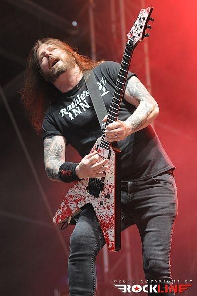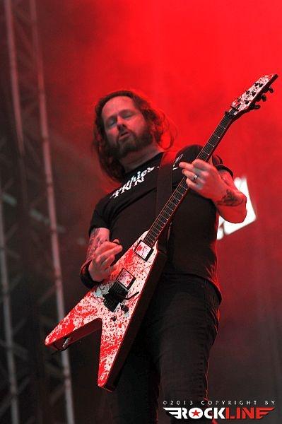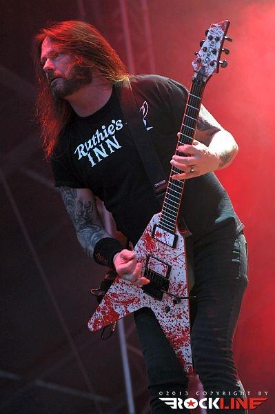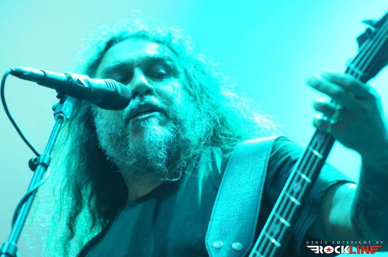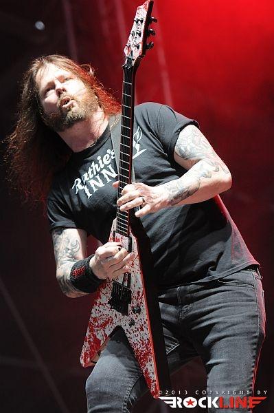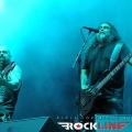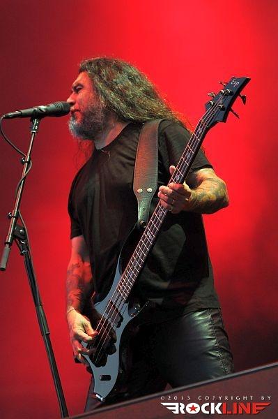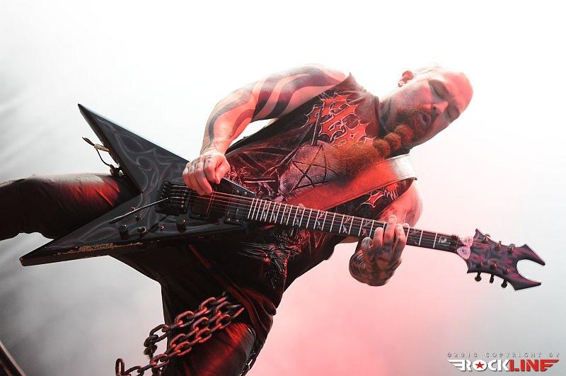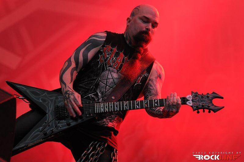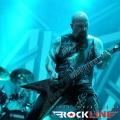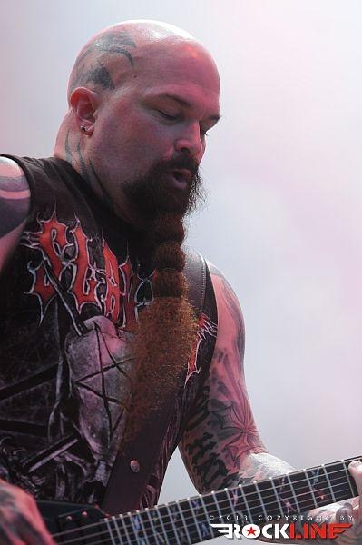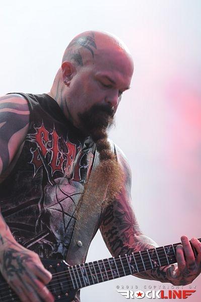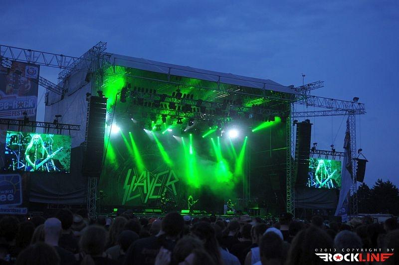 Slayer! Kultni ameriški thrash metalci, ranga »veliki štirje«. Skupina, ki jo v zadnjem času pesti pomanjkanje zdravja. Nedavno tega smo se vsi poslovili od tvorca Slayer biblije, tistega ki je prinesel vse najbolj pomembne riffe v komade – Jeffa Hannemana. Ob tej izgubi je skoraj nepomembno za skupino to, da nikakor ne more skleniti normalne komunikacije z bobnarjem Daveom Lombardom, ki jih je tako vnovič zapustil. Pred poletno turnejo skupine, je tako vskočil v postavo izkušeni Paul Bostaph (Exodus, Testament,..), medtem ko je Gary Holt (Exodus) preverjeni legionar, ki ga je skupina preizkusila prvikrat pred dvema letoma, ko Hanneman ni mogel več igrati kitare, zaradi zastrupitve roke z mesojedo bakterijo (posledica strupenega pajkovega ugriza). Slayer, pa so uprizorili reakcijo »ranjenega leva«. Torej so odigrali koncert na vse ali nič. Brez zadrževanja, brez premišljenega taktiziranja. Le šus na polno. Podivjani Kerry King, karizma brez primere, ki je po novem nekaj kil očitno doniral porejenemu in osivelemu frontmanu skupine Tomu Arayi, ohranja videz nepokorščine in izrazite zagrizenosti. Glede na njegovo čokato držo, preseneča izredna agilnost in odrska dinamika kitarista, ki se je med koncertom nekajkrat z ramo ob rami pridružil Holtu na njegovi desni. Za razliko od Kinga, se Holt ne sme premakniti mnogo proti sredini odru, ko zavzema svojo skrajno levo pozicijo (gledano na oder). Tak je interni dogovor v skupini, Holt pa nosi še vedno za Slayer le vlogo najetega plačanca.