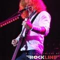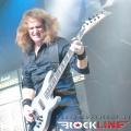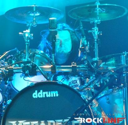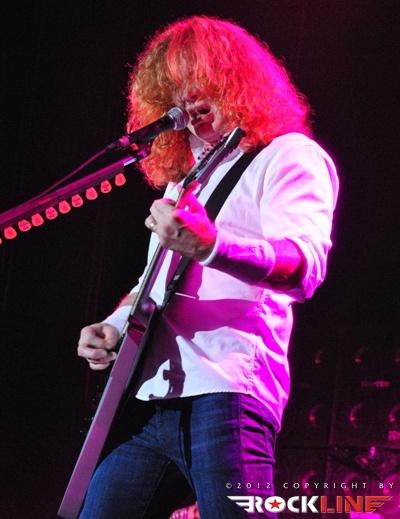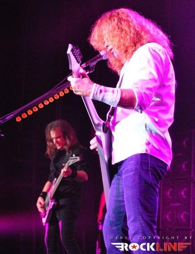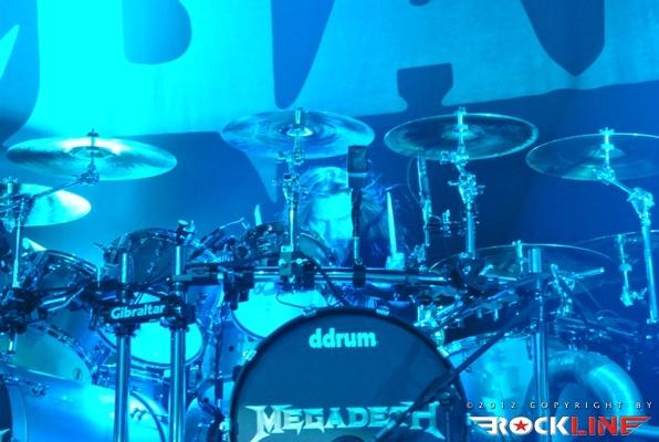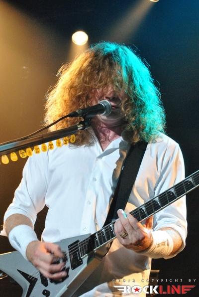 Nato pa je napetost začela naraščati, nestrpno čakanje na nosilce večera pa je potenciralo skandiranje imena benda. Megadeth! Kar malo dvomil sem, da jim bo uspelo ponoviti odličen koncert izpred dveh let. V celoti odigrana Rust in Piece je nekaj, kar je pravzaprav nemogoče preseči, a Megadeth je prvi ljubljanski koncert vendarle uspelo nadgraditi. Zavese so padle z ozadja odra, z njega sta zazijali dve ogromno steni Marshallovih ojačevalcev (vemo sicer, da jih vsaj tričetrt ni bilo v uporabi, a efekt je bil dosežen), luči so ugasnile in velikani thrasha so Ljubljano pozdravili z Never Dead s trinajstega studijskega albuma Th1rt3en in znova se je ponovila največja hiba prejšnjega koncerta. Zvok je bil uvodoma zopet povsem nejasen, zapacan in za skupino kova Megadeth milorečeno površen. A se je k sreči zvok postopoma izboljševal, premosorazmerno s kvalitetno bendove predstave in glasnostjo publike. Dave Mustaine, David Ellefson, Chris Broderick in Shawn Drover so največ pozornosti namenili aktualnemu ploščku, poskrbeli za odlično izvedbo železnih klasik brez katerih si Megadeth koncerta ne gre predstavljati, veliko lepše pa je bilo slišati nekaj čudovitih presenečenj. V prvem delu koncerta je Mustaine tako odrenčal Head Crusherja z Endgame in nas v preteklost vrnil s pretresljivo In My Darkest Hour ter nas v Roswell popeljal s Hangar 18 in nam pojasnil teorijo zarote o pristanku nezemljanov v Novi Mehiki leta 1947. Žal pa je vse skupaj Dave namesto z močjo steklega buldoga razlagal s šibkostjo kadilca treh škatlic čikov 57 na dan. Prav Mustainov glas je bil največja hiba nedeljskega koncerta, saj je bil ta več kot očitno slaboten, skrhan in ves čas pokopan pod izraziteje ozvočenimi kitarami. Ginger je prvo opasano kitaro hitro zamenjal z kitaro z dvojnim vratom in vsaj na tem področju dokazal, da mu prsti za razliko od glasu še vedno delujejo brezhibno in kot na prvencu Killing Is My Business… An Business Is Good! Po fantastično izvedeni polbaladi Trust je sledilo prvo presenečenje z redko igrano Foreclosure of a Dream in nekaj minut še gateparajoča klasika Ashes in Your Mouth. Vedno bolj vroča publika je povzročila, da se je bend sprostil, pozabil na rutino (ki je pestila njihov prvi koncert v Ljubljani), v igranje vložil več energije in omogočil, da se je med njim in polno dvorano zgradil pristen most. Vrhunsko inštrumentalno izvedbo je podprlo mojstrsko žogliranje riffom med Mustainom in Broderickom, ki je v nekaj letih postal polnopraven člen benda ter eden boljših kitaristov, ki jih je v svojih vrstah gostil Mustaine. Ta je tokrat celo pokazal zadovoljstvo nad publiko, jo večkrat nagovoril, skupaj z bendom pa tudi sezul s še nekaj popolnimi presenečenji – Angry Again (prvotno izdan le kot single posnet pa za kultni h-woodski akcijski »flick« Last Action Hero s Schwarzeneggerjem), She-Wolf ter Hook In Mouth, lepo pa sta se mednje usedla tudi novinca Whose Life (Is It Anyways?) ter Public Enemy No. 1. Vrhunec pa smo nedvomno doživeli (tako mi kot bend), ko je Mustaine napovedal himnični A Tout Le Monde med refrenom katerega ga je prvič zares preglasila razpoložena publika, še lepša pa se je izkazala med Symphony of Destruction s petjem oz. skandiranjem »Megadeth, Megadeth!« v skladu z ritmično podlago. Ob tem ni ostal ravnodušen niti Dave in publiko pohvalil s tem, da bi bili na nas ponosni tudi naši bratje iz Argentine, s čimer je seveda ciljal na publiko z DVDja That One Night: Live in Buenos Aires. Med poslovilno Peace Sells nas je z odra pozdravil še Vic Rattlehead, bend pa smo še zadnjič na oder priklicali za Holy Wars… The Punishment Due.
