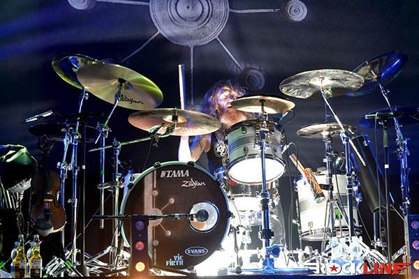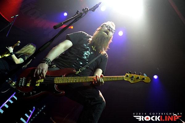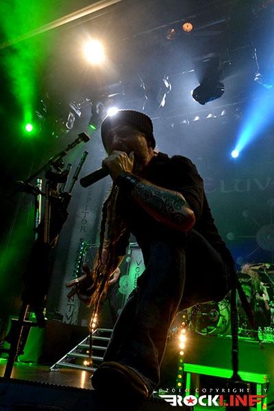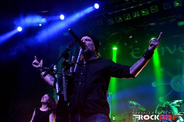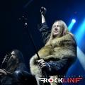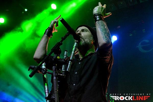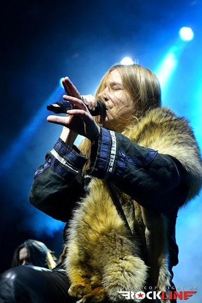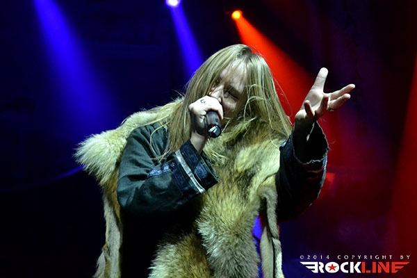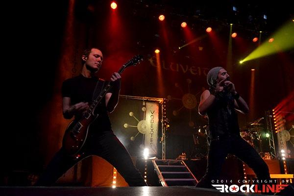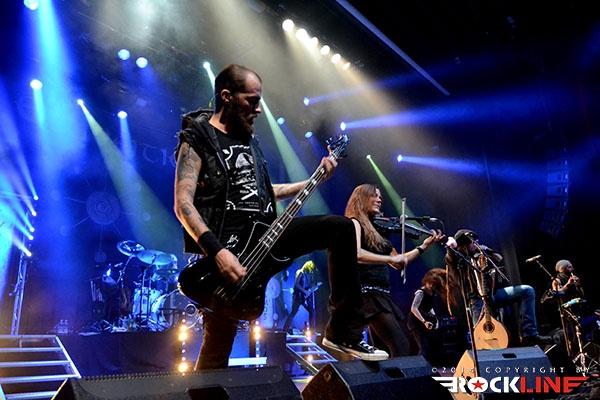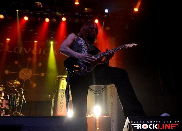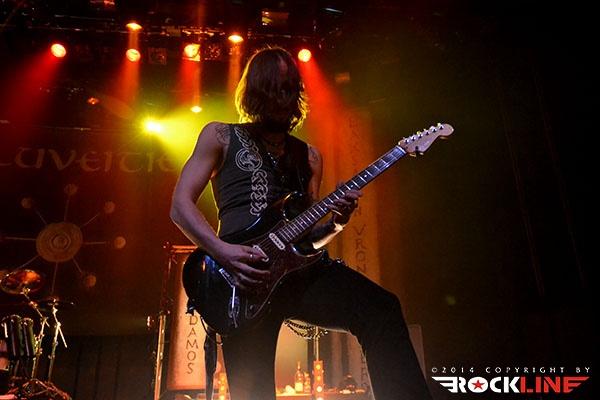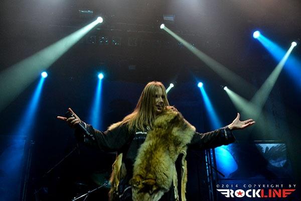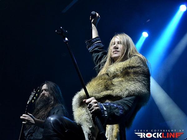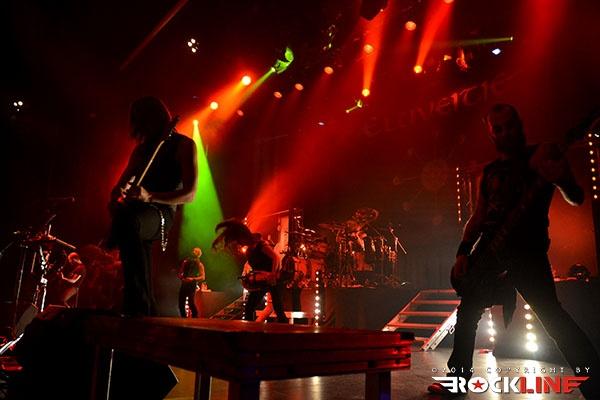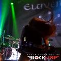 Tako kot Rusi pred njimi, tudi Švicarji za njimi, uživajo neznansko priljubljenost na slovenskem. Za povrh pa je le dan po koncertu njihove oboževalce razveselila še novica, da bodo igrali tudi na Metaldays 2015. Če sta predskupini vztrajali v besedilih v materinem jeziku, pa Eluviete večino svojih skladb prepevajo v angleščini, so pa seveda tudi izjeme, v katerih prednjači že izumrli jezik starodavnih Galcev. Vodja zasedbe Chrigel Glanzmann je namreč ljubiteljski zgodovinar, ki raziskuje starodavno domovino švicarjev in posledično se tudi besedila skladb v večini primerov nanašajo na ta njegov konjiček. Ljubljanski nastop je obetal koncertno predstavitev nove odlične plošče zasedbe, Origins in koncert so začeli z eno od aktualnih uspešnic, King. Pri osmih članih zasedbe na odru, pogled kar bega po odru, a se vedno znova ustavi na osnovni trojki na sredini odra – že prej omenjenemu Chrigelu, ki prevzema glavni vokal ter poleg preigrava še različne piščali, akustično kitaro, tamburico in drugo; Nicole na violini, ki se je slovenski publiki predstavila prvič in ima zelo pomembno vlogo v njihovi glasbi; ter Anna, ki prav tako dopolnjuje glasbo z lajno, ima pa tudi vlogo ženskih vokalov. Tako številna skupina pa se je skozi leta seveda spreminjala in poleg že prej omenjene Nicole, se nam je tokrat prvič predstavil tudi Matteo Sisti, ki igra na razne piščali ter dude. Kombinacija melodičnega death metala in folka, moških growl in ženskih clean vokalov, starodavnih instrumentov z modernimi rock elementi očitno deluje. Kolikor je kontrastov, toliko je fuzije in končni rezultat je razgibana glasba, ki odprim glavam dopušča, da se zasanjano odpravijo v nek drug svet, v nek drug čas. Pred začetkom aktualne uspešnice Call of the Mountains, je Anna povedala, da so posneli skladbo poleg angleščine še v štirih uradnih švicarskih jezikih in zaprosila občinstvo, da glasuje, ali naj jo izvedejo v angleščini ali v njim domači nemščini – izglasovana je bila slednja, skladba pa je dobila naslov De Ruef vo de Bärge. Čas na koncertu pa je tekel še hitreje od tekočih luči v lightshowu in konec se je približal čisto prehitro. Čeprav občinstvo generalno ni tako norelo kot pri Rusih, pa je treba priznati, da se sloga skupin precej razlikujeta, se pa je pri Švicarjih zgodil manjši “wall of death”. V podaljšku so Eluveitie na oder povabili tudi Arkoninega Volka z dudami, ki je le te igral v duetu z Matteom v skladbi Helvetios.