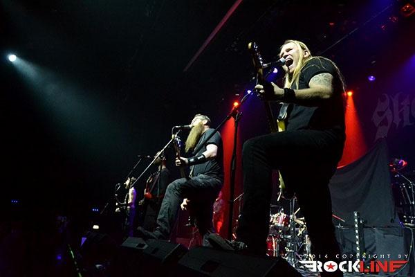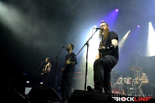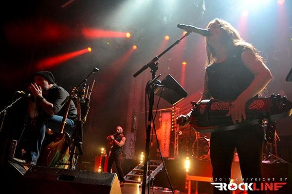 Etno večer so točno ob uri pričeli Islandci. Priznam, Skálmöld do sedaj nisem poznal. Kolega mi je prišepnil pred koncertom, da naj bi šlo za še en »viking metal« band, malo manj melodičen od Amon Amarth. Pustil sem se presenetiti in moram priznati, da na koncu nastopa dvorano zapustil zelo pozitivno presenečen. Pa nisem bil edini. Pregovorno skromno občinstvo pri prvih in manj znanih predskupinah, so severnjaki spremenili v precej veliko množico, ki je tudi vneto sodelovala in napravila res dober vtis, tako na njih kot na sliko celotnega večera. Tri kitare na odru so mogoče na prvi vtis spominjale na Iron Maiden, a se je kombinacija zelo obnesla. Za razliko od drugih dveh skupin večera, Skálmöld ne uporabljajo tradicionalnih instrumentov – za atmosferiko poskrbi klaviaturist Gunnar, za harmonije pa skrbi udarna četverica v prvi vrsti – bradati Snæbjörn na basu, Björgvin in Baldur na ritem in Þráinn na solo kitari. Medtem ko Björgvin res da prevzema levji delež vokalnega nastopa, pa ga na back vokalih stalno dopolnjujejo preostali trije kitaristi, čiste vokalne linije pa pripadajo Gunnarju. Zvrst glasbe bi bilo zelo težko opredeliti, saj ima človek občutek, da se glasbeni stili menjajo in spajajo v vsaki skladbi posebej in drugače. Medtem, ko je v starejših skladbah moč zaznati večji vpliv glasbenih folk idolov, pa so v novejših delih veliko trši, sprehajajo se od death, do black, thrash in power metala, folk elementa pa ostaja le še za ščepec.