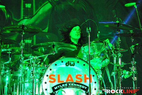 Odkritje večera je bil vsekakor Myles Kennedy! Možak je sicer v glasbenih vodah aktiven že več kot dve desetletji, na veliko sceno pa je stopil šele pred nekaj leti z uspehom zasedbe Alter Bridge, še korak naprej pa je naredil, ko se je pridružil Slashevemu solo projektu in postal njegova desna roka. Lansko leto na Graspopu v Belgiji, kjer sem se s Kennedyjem in spremljevalno skupino "Zarotnikov" srečal prvič, Kennedyju ni uspelo docela motivirati festivalske množice, to pot v Tivoliju pa je bila slika popolnoma drugačna! Obiskovalci so sledili njegovi odrski igri in večkrat z dvignjenimi rokami pričarali dihjemajočo predstavo, ki je glasbenikom na odru vidno prijala. Slashev frontman sicer ni kdo ve kako karizmatičen, zato pa toliko suverenejši pri izpolnjevanju vokalnih zadolžitev. Njegova vokalna predstava je temeljila na izredni prilagodljivosti, kar je bilo opaziti predvsem pri G'N'R priredbah, v katerih se je barvno nekoliko približal Axlu Rose-u, še vedno pa obdržal potrebni kanček lastne izrazne formule in temperamenta.