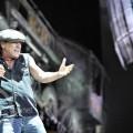 Ko so nas Italijani vendarle nehali maltretirati (glasbo v rangu obeh predskupin bi OZN zlahka vključila v Konvencijo proti mučenju in drugim okrutnim, nečloveškim in poniževalnim kaznim ali ravnanju) je nastopilo še mučno čakanje, da Stadio Friuli zakrije mrak. Bolj mračno je postajalo bolj je med publiko vršalo in ko se je končno le povsem stemnilo in se je na odru na velikem ekranu začela po Ac/Dc perverzna in hudomušno erotična animacija je okrog 40.000 glava množica eksplodirala. In tako je v čelnem trčenju eksplodiral tudi rock 'n roll vlak, ki se je zaletel direktno v sredino velikega odra nad glavo bobnarja Phila Rudda. Ac/Dc so nas pozdravili uvodnim komadom aktualne plošče Black Ice, Rock 'n Roll Train! Gospodje izmeničnega toka se kljub ne več rosnim letom držijo v odlični formi. Phil Rudd, ki je imel vsakič ko ga je prikazala kamera na velikem ekranu, v ustih sveže prižgano cigareto je skupaj z basistom Cliffom Williamsom tekom celotnega koncerta držal tempo trdne in suverene ritem sekcije, ki je nezmotljivo torpedirala nižje zvoke med nič hudega sludečo publiko. Starejši od bratov Young, Malcolm, je trdo usidran pred svojim mikrofonom, ki se mu je pridružil med obeznim "backvokalnimi" deli, skrbel za neverjetno ritem podlago med solerskimi eskapadami mlajšega brata. Angus kot prava maskota benda je tako v miru, natančno in hitro premikal prste po vratu svojega Gibsona SG in poskrbel za nori energični performans, ki prej pritiče kakšnemu smrkavcu v dvajsetih, ne pa gospodu Youngu pri 55ih! Angusova odrske energija je sapojemajoča in ko pade v eno izmed svojih "trademark" poplesavanj in kultnega racajočega poskakovanja se skoraj orosi oko, ko to doživiš tudi v živo. Največja neznanka večera pa je bila prav vokalna predstava Briana Johnsona, ki je sicer navdušil že takoj ko je stopil na oder, jasno z obvezno opravo - beretko in brezrokavnikom. A vokalno je žal 63 letni Johnson na trenutke precej pešal, njegovo značilno vreščanje pa je postalo precej nižje in globlje. Prav Johnson si je moral med komadi večkrat privoščiti krajši počitek kar je sicer rahlo pokvarilo peklensko intenziteto koncerta, a prav zanima me, če bo kdo izmed nas pri 63 letih sposoben česa takšnega. Mislim, da bomo takrat za razliko od Johnsona pod odejico reševali križanke, jedli kašico in premišljevali kako je že ime vnukom.