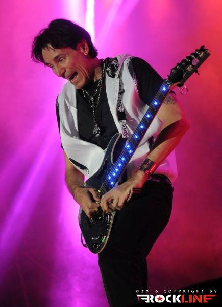Ker se rock'n'roll časi Kranjcem mračijo iz dneva v dan vse bolj in bolj, smo prisiljeni hoditi na koncerte večjih do največjih izvajalcev vedno v tujino. Včasih k sreči ne prav daleč, kot torej tokrat, ko se je znameniti kitarski čarodej ustavil kar na videmskem gradu. Idilična parkovna grajska površina oziroma prostrana zelenica, nameščena pred samo grajsko utrdbo, je gostila impozantni oder, pred njega pa je bilo postavljenih kakih 1500 sedišč. Steve Vai je s svojo spremljevalno zasedbo, ki jo tvorjo še basist Phillip Bynoe, bobnar Jeremy Colson in Vaijev večni »kitarski hlapec«, vendar nič manj izvrstni glasbenik, Dave Weiner, stopil na oder natanko ob pol deseti uri zvečer. Po uradni napovedi torej. Mož je novo turnejo izkoristil za obeležitev 25. obletnice izdaje svoje kultne klasike »Passion And Warfare« (1990). Vai tudi v tem oziriu ni stal križem rok, sa je jubilej pospremil z novim uradnim dokumentom imenovanim "Modern Primitive" (2016), ki je dvojni. Na prvem plođščku se nahajajo skladbe, ki so nastale v času snemanja albuma »Passion And Warfare«, pa ostale vse do letos shranjene v Vaijevih »arhivih«, na drugem pločku pa se nahaja remasterizirana verzija studijskega albuma »Passion And Warfare« (1990), ki je Vaia postavil med elito svetovno najuspešnejših in najbolj cenjenih glasbenih izvajalcev ter tisto, kar je najbolj pomembno. Med elito najbolj posebnih in nenavadnih glasbenih umetnikov vseh časov ere rocka.